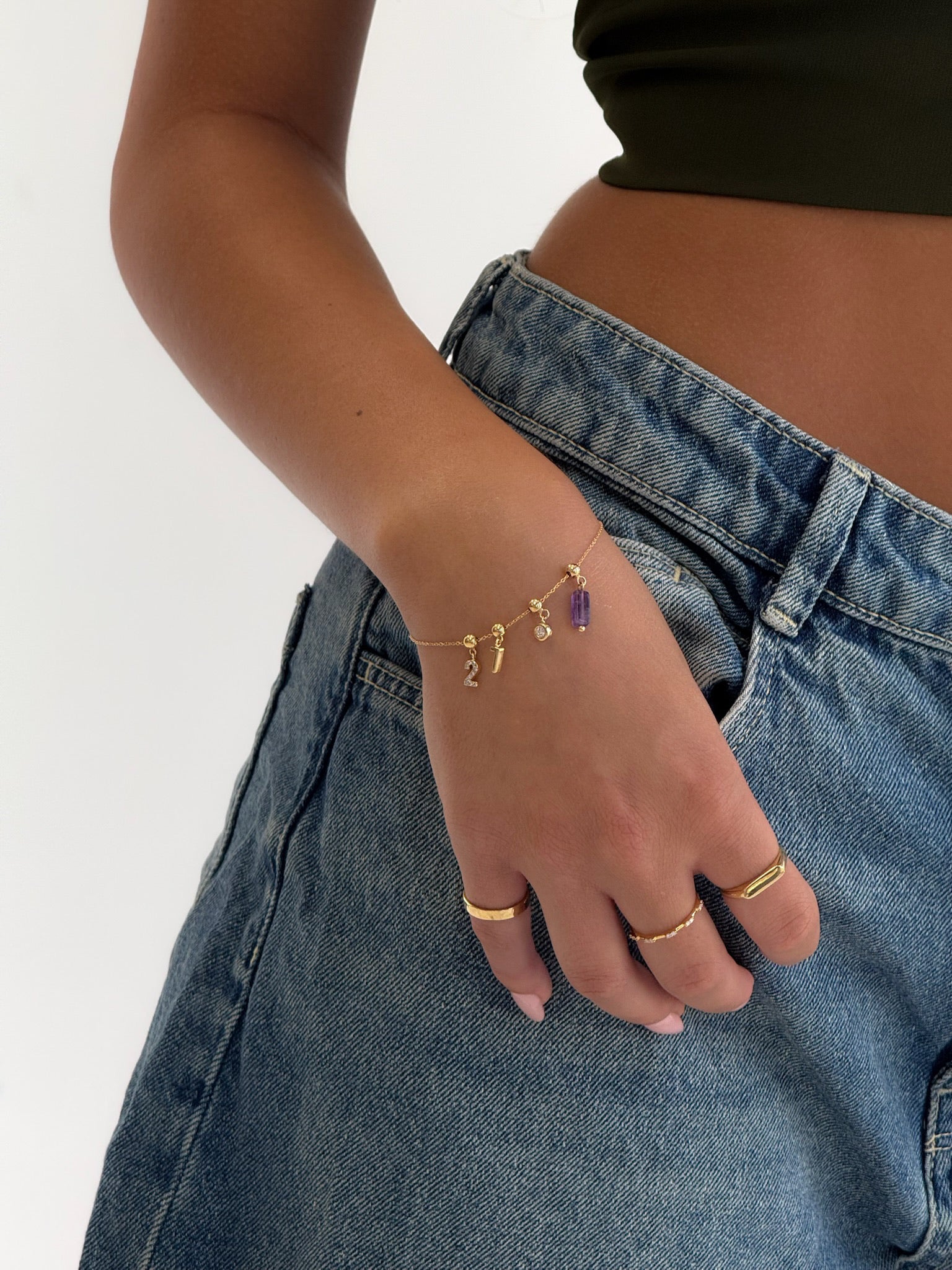 Each slide charm is chosen for a reason, a letter, a number, a moment. Designed to move with you and stay personal.