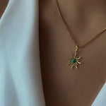 هذه القلادة الشمسية بتصميمها الرائع مع لون مينا أنيق في وسطها، ما يجعلها القلادة المثالية لأي مناسبة. تفاصيلها الدقيقة وحرفيتها ستترك انطباعًا لا يُنسى لدى كل من يراها. سواءً كانت مناسبة خاصة أو لإضافة لمسة من الرقي إلى إطلالتك اليومية، ستُضفي هذه القلادة الشمسية لمسةً مميزةً على إطلالتك.