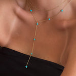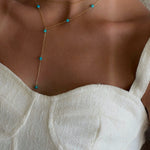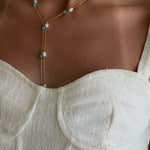 أضف لمسة من الأناقة مع قلادة لاريا الفيروزية. تتميز هذه القطعة الأنيقة بأحجار فيروزية زاهية على سلسلة ذهبية، مثالية لأي مناسبة. تصميم لاريا متعدد الاستخدامات يُضفي لمسة من الأناقة على الإطلالات الرسمية وغير الرسمية. استمتع بجمال هذه القلادة الأخّاذ الذي لا ينضب.