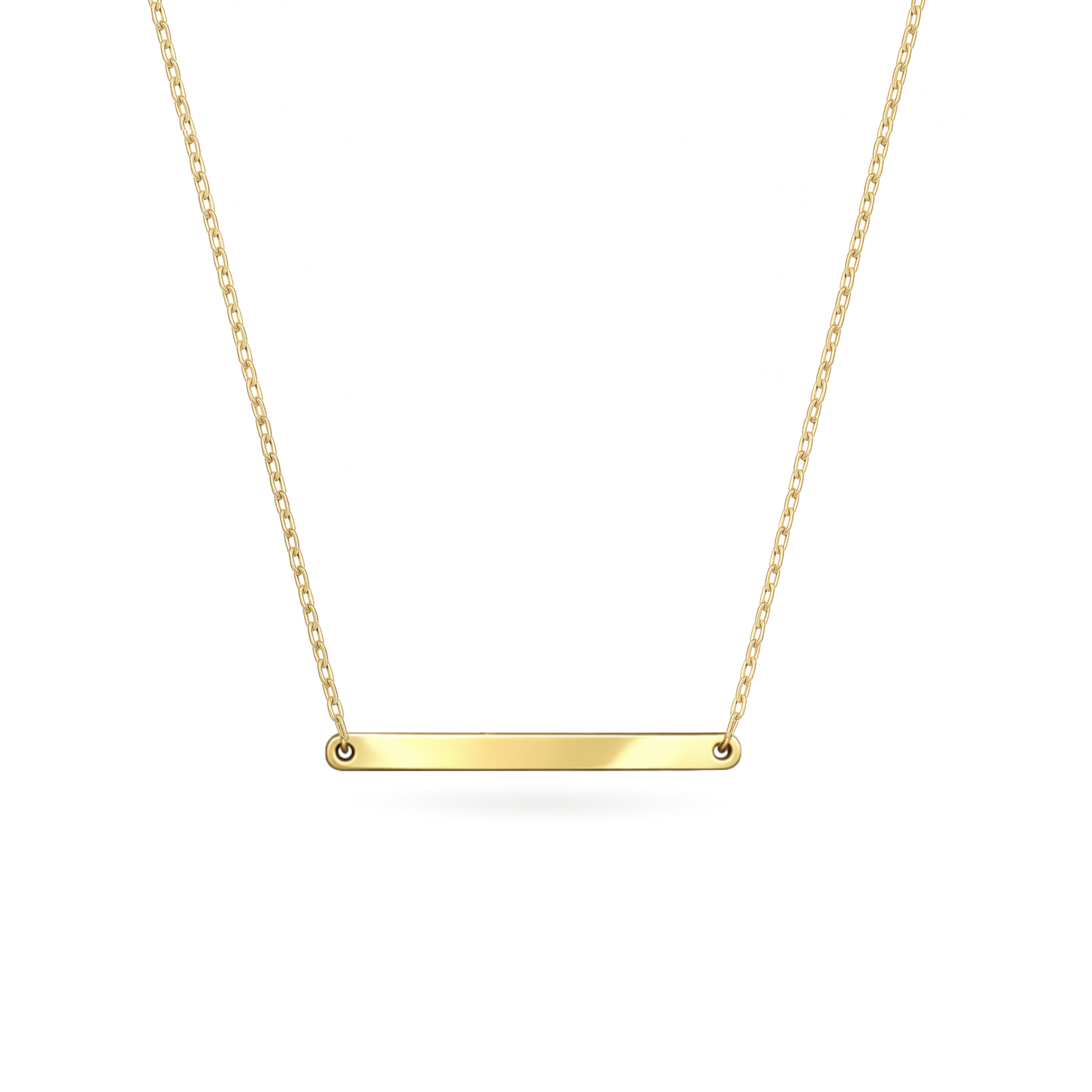 أضف لمسةً مميزةً وشخصيةً إلى مجموعة مجوهراتك مع قلادة البار القابلة للنقش. سواءً كان اسمًا أو تاريخًا أو ذكرى مميزة، يمكنك نقش ما يحلو لك على هذه القلادة لتجعلها قطعةً مميزةً وذات معنىً خاص. من المؤكد أنها ستلفت الأنظار وستكون محورًا للحديث في كل مرة ترتديها.