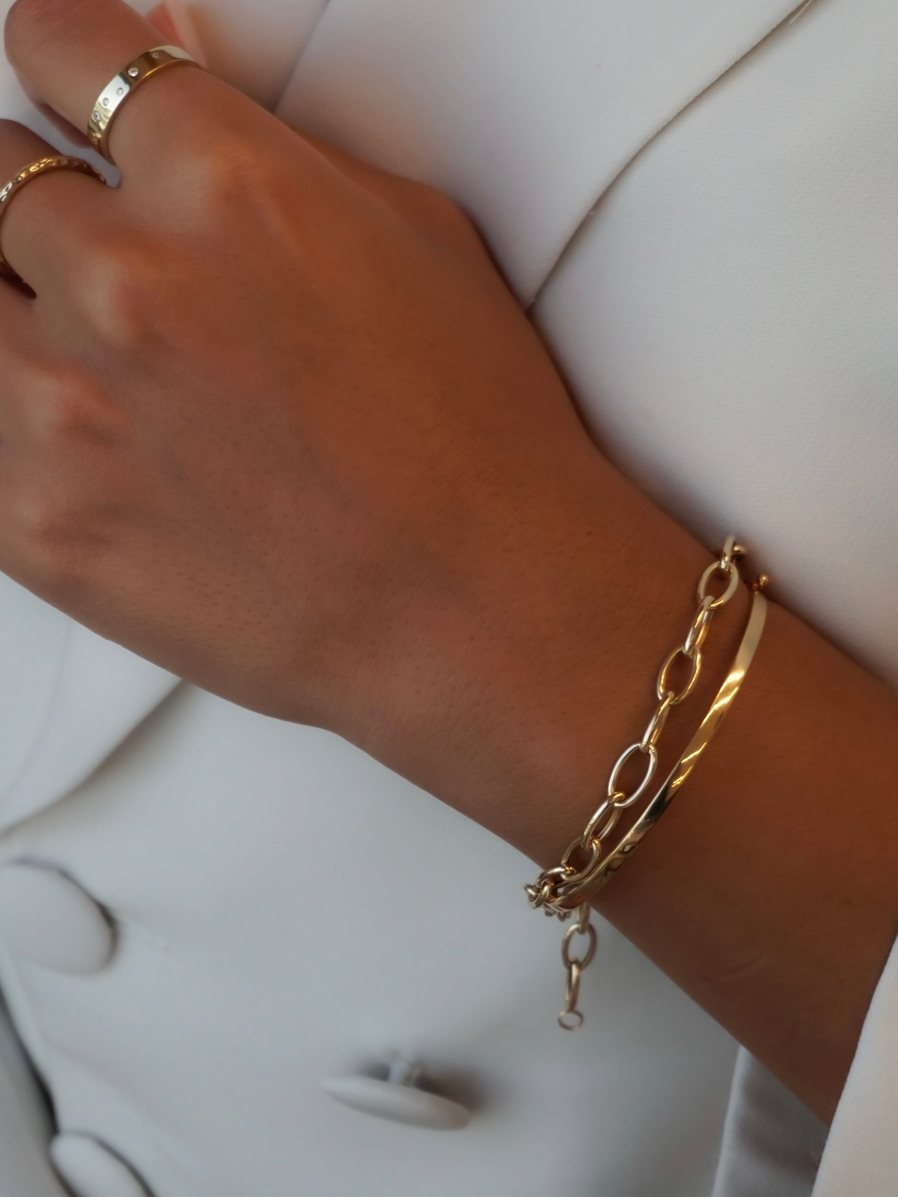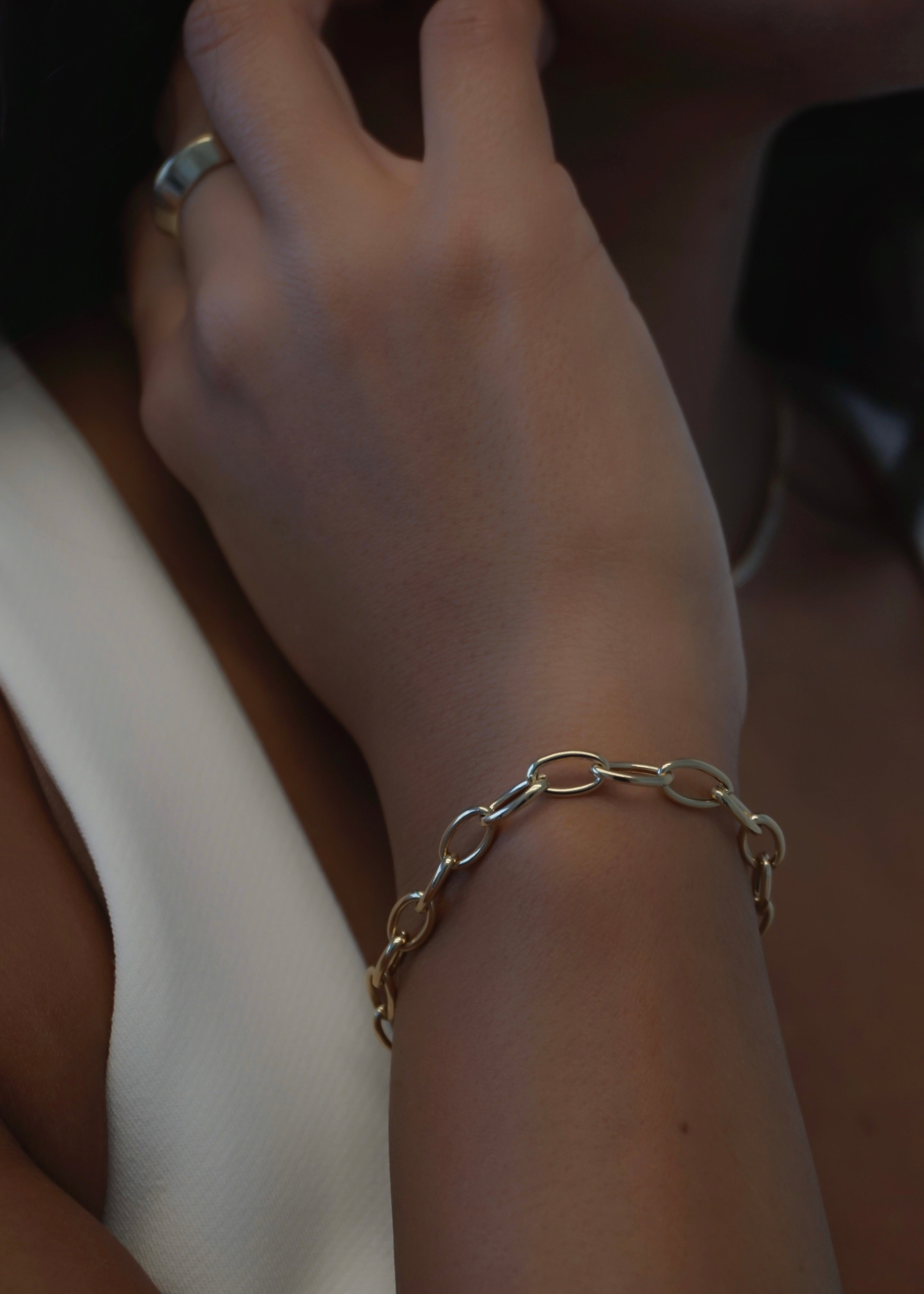 The Oval Paperclip Chain Bracelet is crafted in 18K solid gold, with elongated links that feel sleek, sharp, and a little bit addictive.