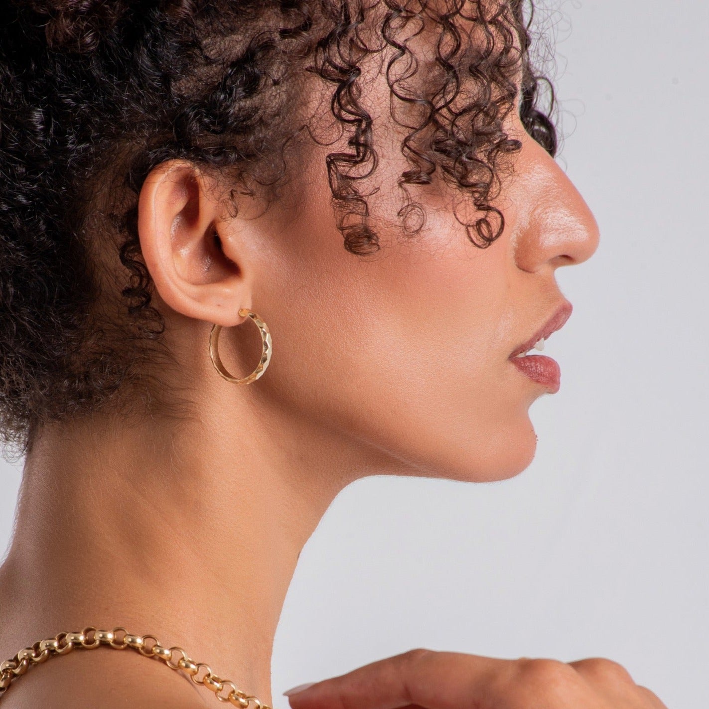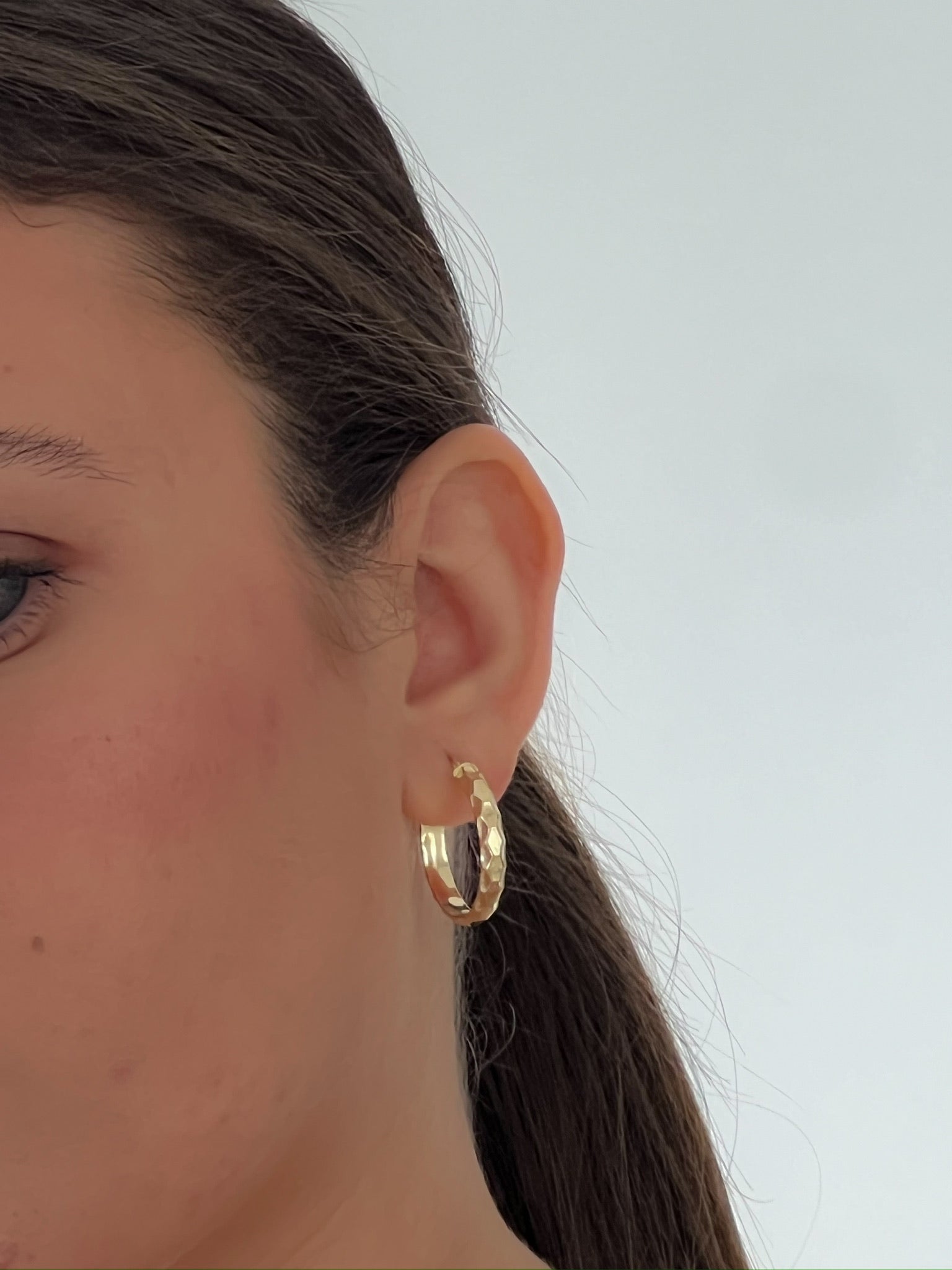Every jewelry collection needs a pair of gold hoop earrings that match everything you own. These earrings are all about simplicity, with a complete hoop shape, easy-to-use catch closure, and a subtle brushed texture. They seamlessly shift from day to night, making them the perfect piece for any occasion.