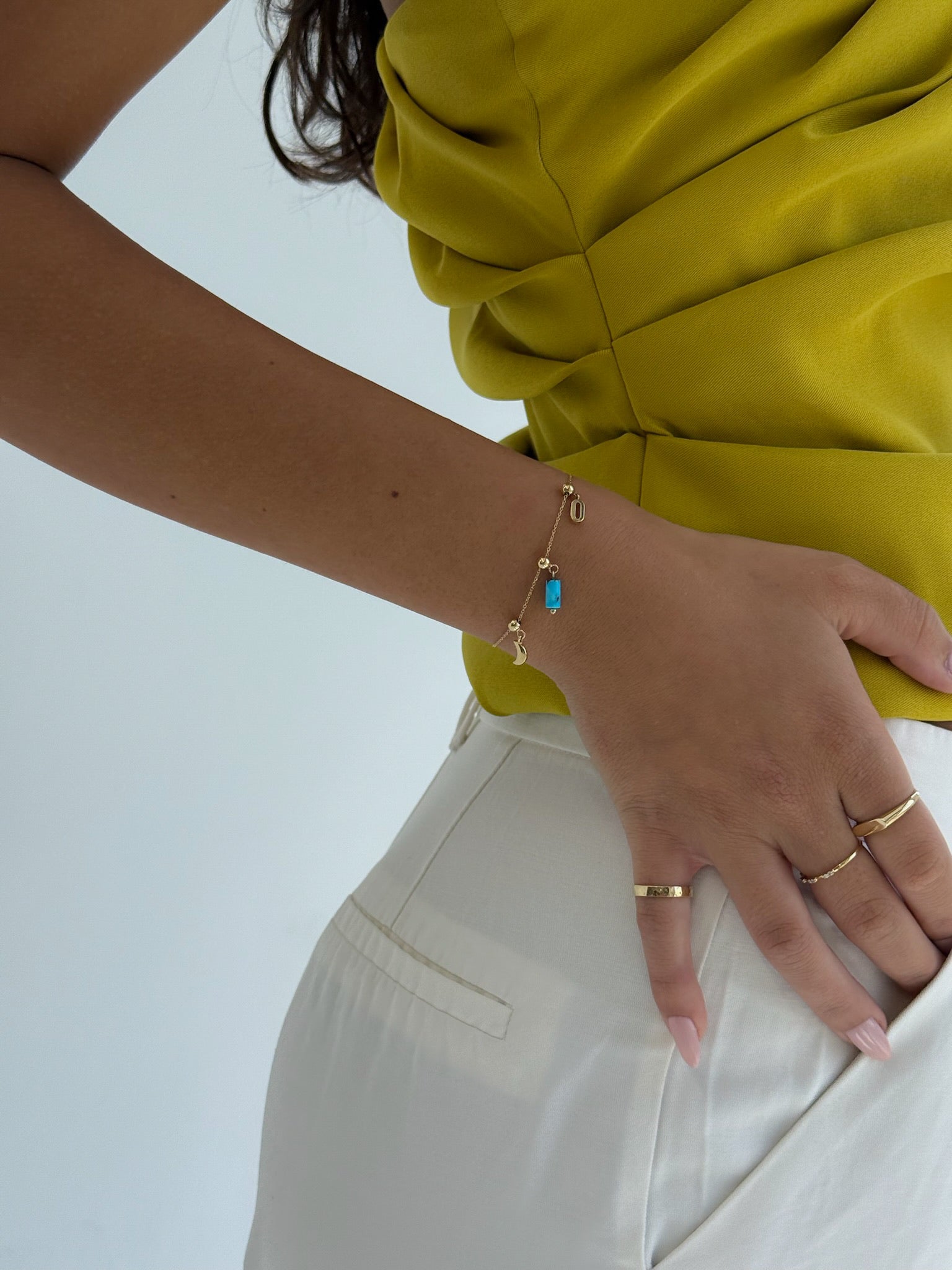 Crafted in 18k solid gold and designed with a silicone-lined adjustable sliding ball, this bracelet offers the perfect fit. Comfortable, secure, and made to move with you. Measuring up to 18cm, it adjusts effortlessly to your wrist for stacking, styling, or wearing solo.