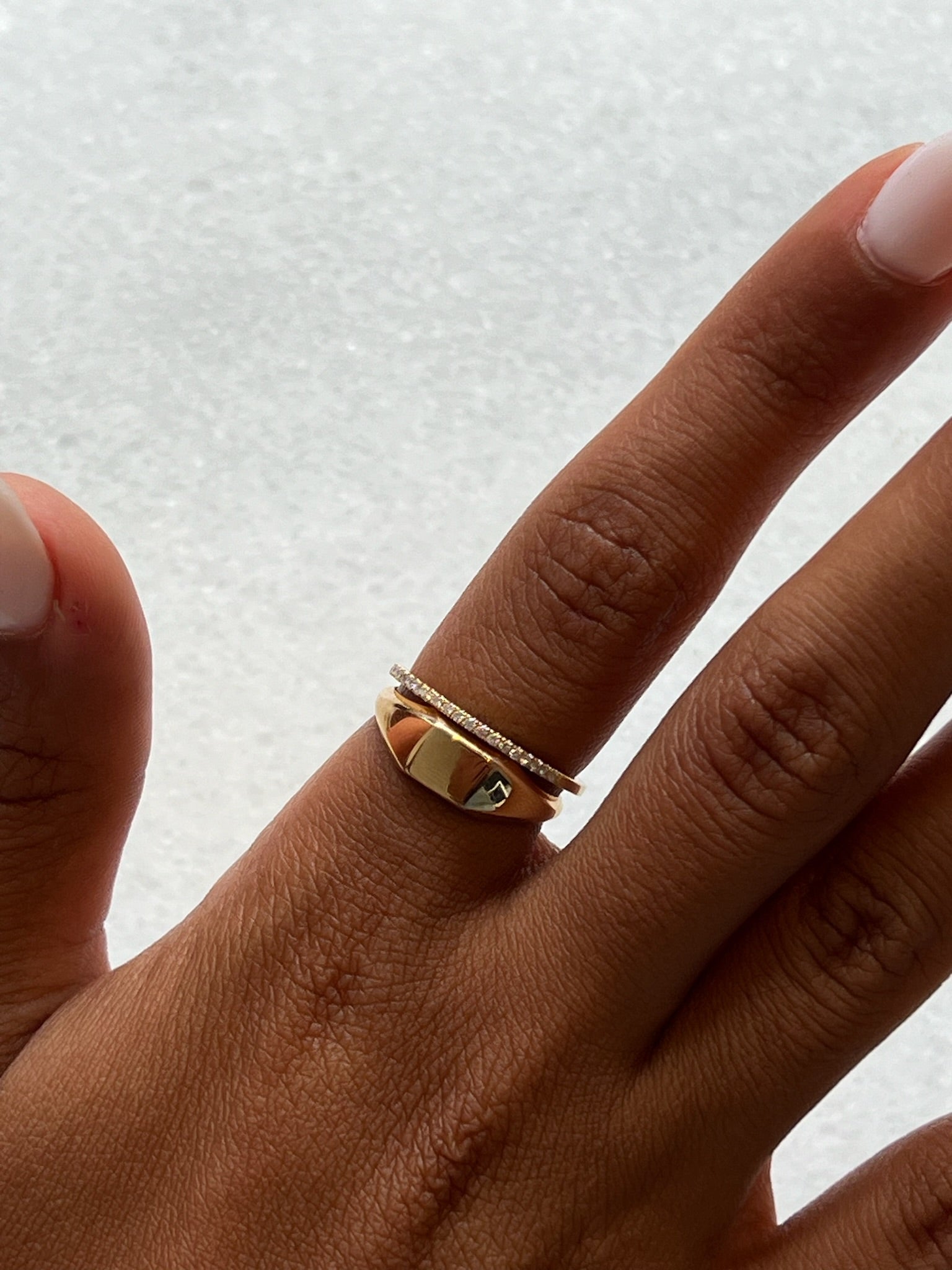 Our Square Signet Ring is a timeless piece that combines classic elegance with modern design. This ring features a bold, square face making it a statement piece that exudes confidence and sophistication. Whether worn as a personal signature or as a stylish ring, the Square Signet Ring is an enduring addition to any collection, perfect for those who appreciate the finer details in life.