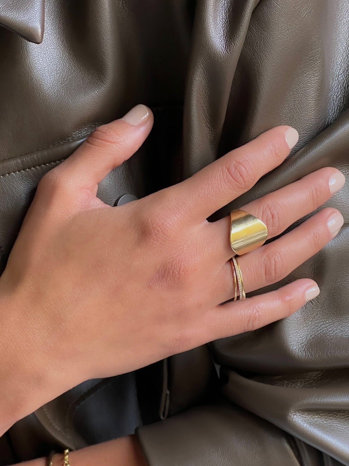 Meet the Wide Cigar Ring – your new partner in shine! Big, bold, and unapologetically chic, this beauty knows how to steal the spotlight. Perfect for when you want your hands to do the talking (literally). Wear it solo for maximum drama or stack it up for a party – either way, this ring’s got the ‘wow’ factor locked in. Warning: compliments guaranteed!