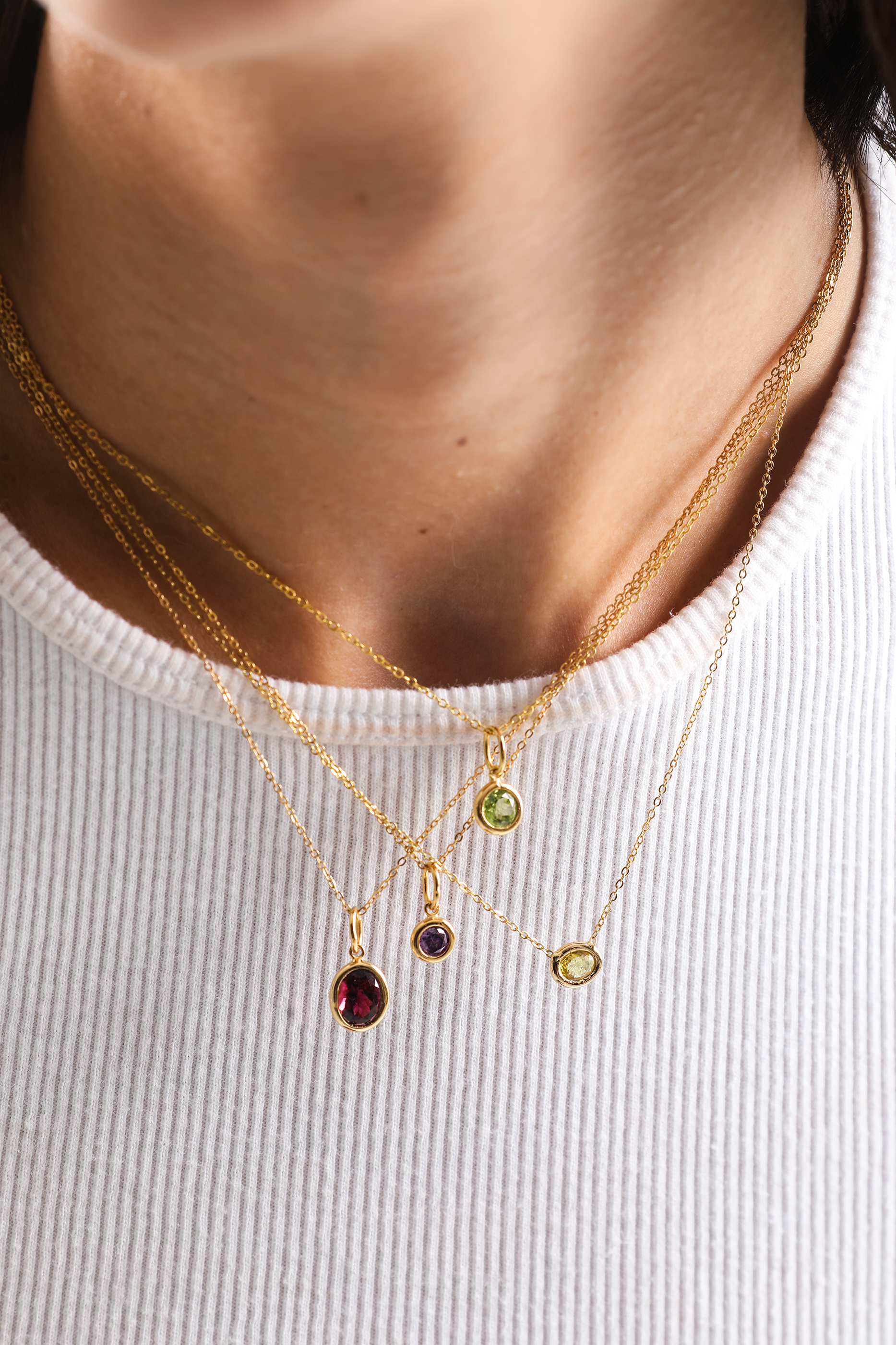 Achieve a stunning look with this Amethyst Round Pendant. The pendant is crafted from solid gold and is set with a stunning Amethyst stone that will make any outfit pop. Perfect for summer days and nights, this pendant is sure to turn heads wherever you go.