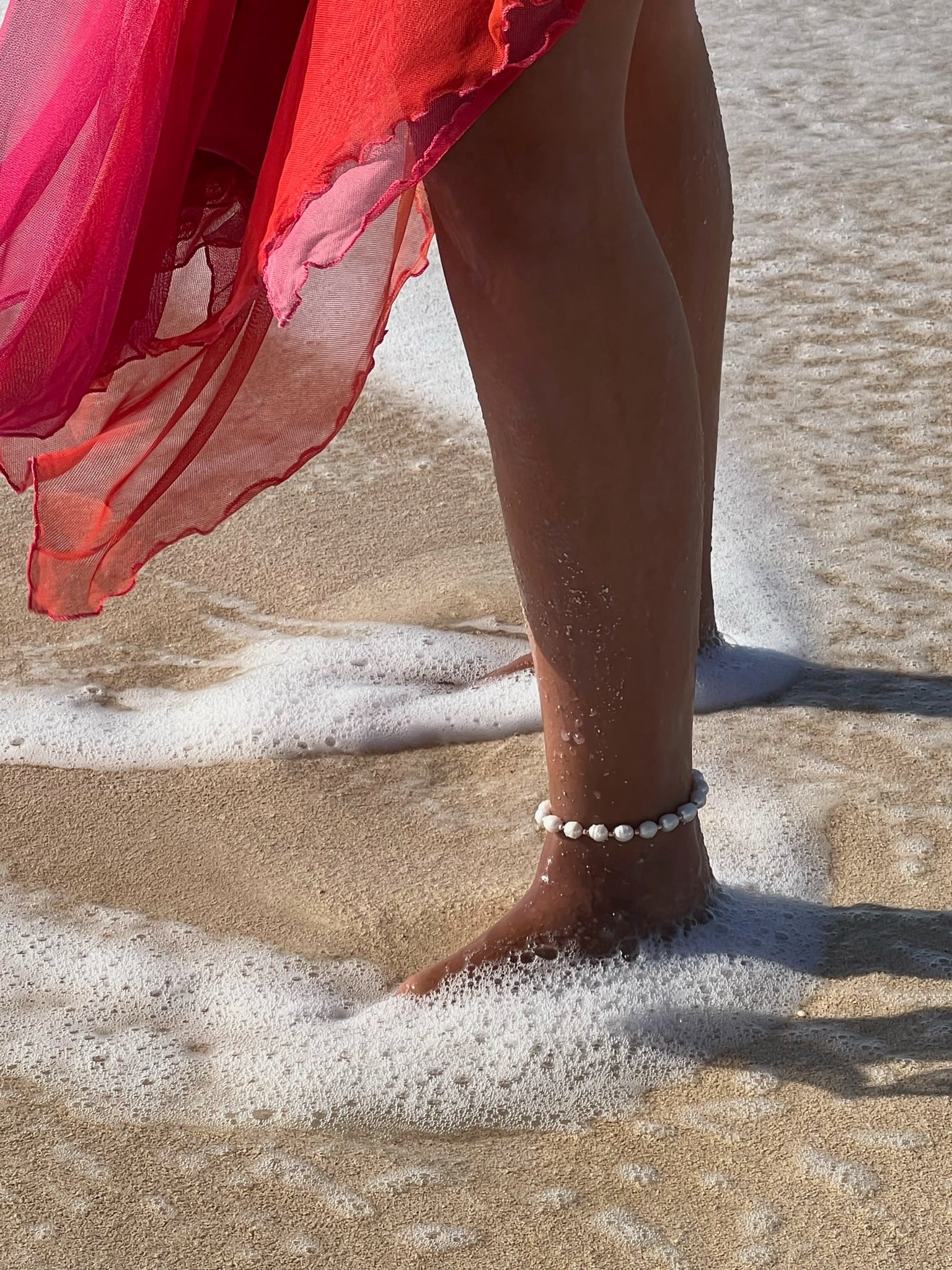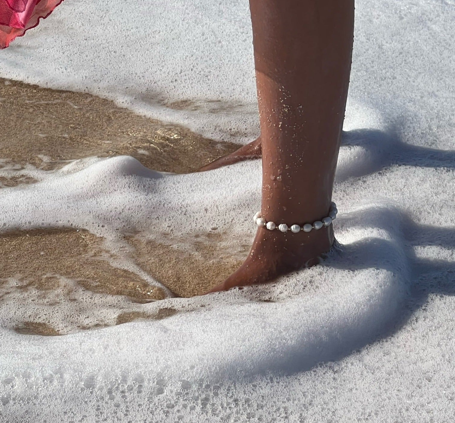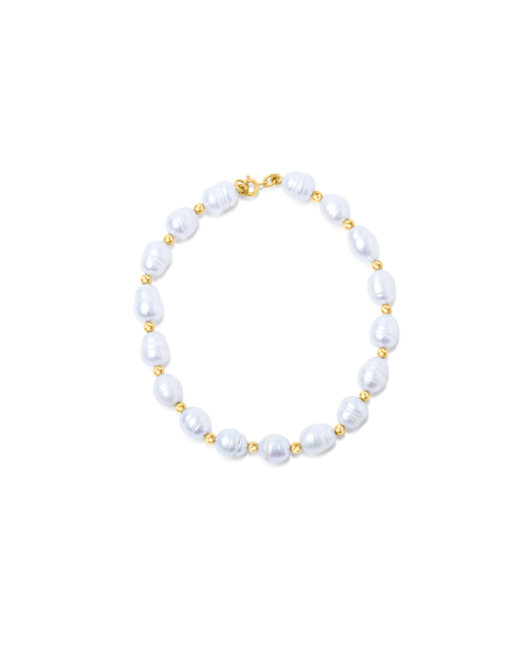 This anklet is an absolute must-have for any stylish wardrobe. With its delicate baroque pearls, it exudes timeless elegance and is bound to turn heads. And let's not forget how perfect it is for summer with its lightweight feel. Add it to your collection now and elevate your look to the next level.