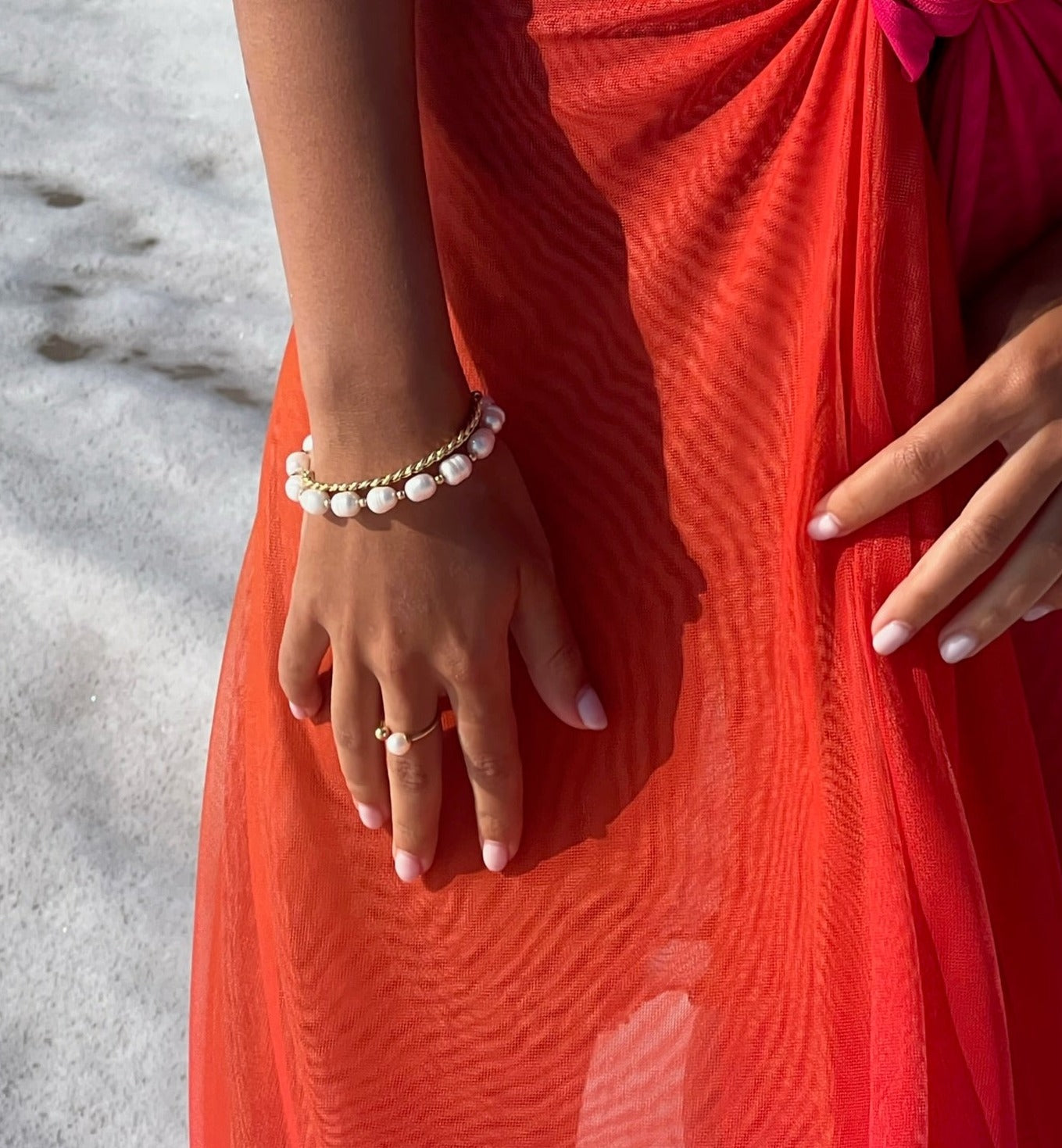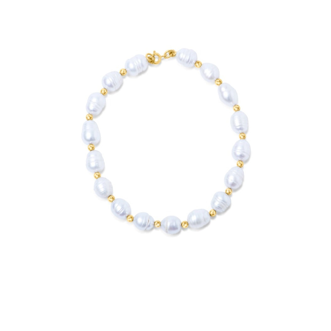 This bracelet is an absolute must-have for any stylish wardrobe. With its delicate baroque pearls, it exudes timeless elegance and is bound to turn heads. And let's not forget how perfect it is for summer with its lightweight feel. Add it to your collection now and elevate your look to the next level.