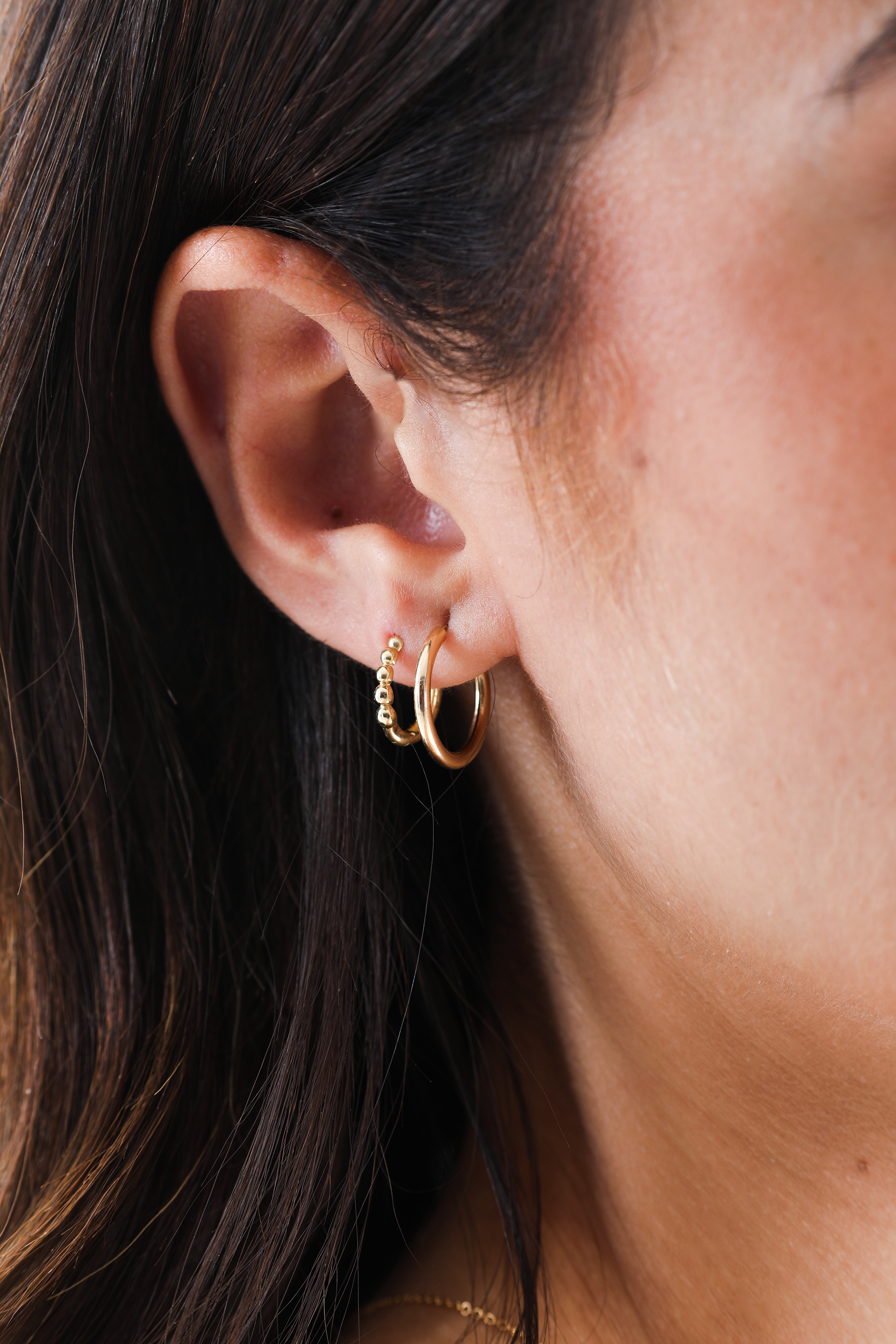 Upgrade your jewelry collection with our Beaded Huggie Hoops! These hoop earrings will add a luxurious and timeless look to any outfit. Whether you're looking for an everyday accessory or something special for a night out, these bold statement pieces are sure to turn heads.