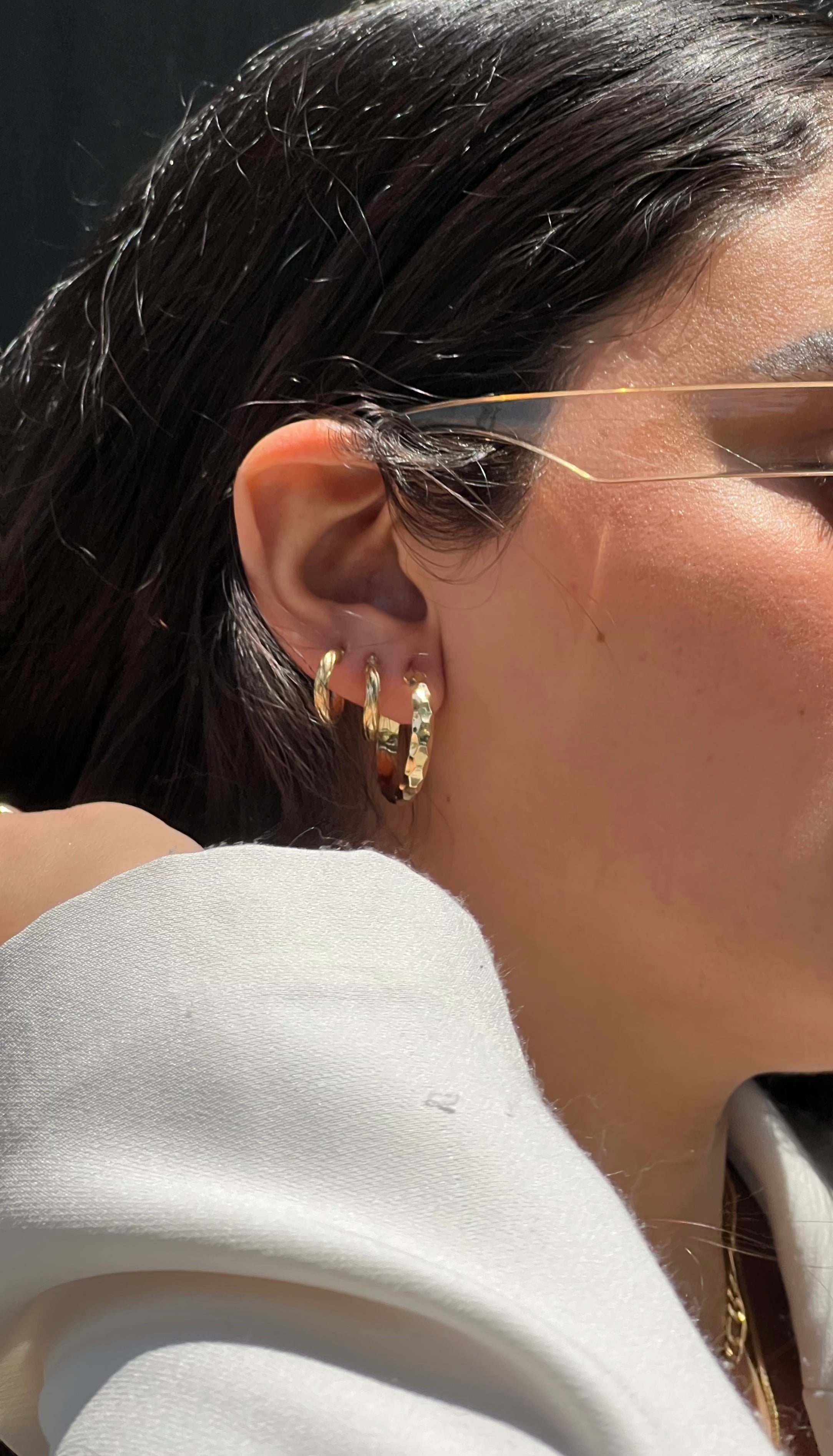 The perfect blend of style and versatility. These earrings are a stylish addition to any outfit, whether you're dressing up for a night out or keeping it casual with a cozy sweater. With their eye-catching twist design, they're sure to become your go-to jewelry for effortless glamour.