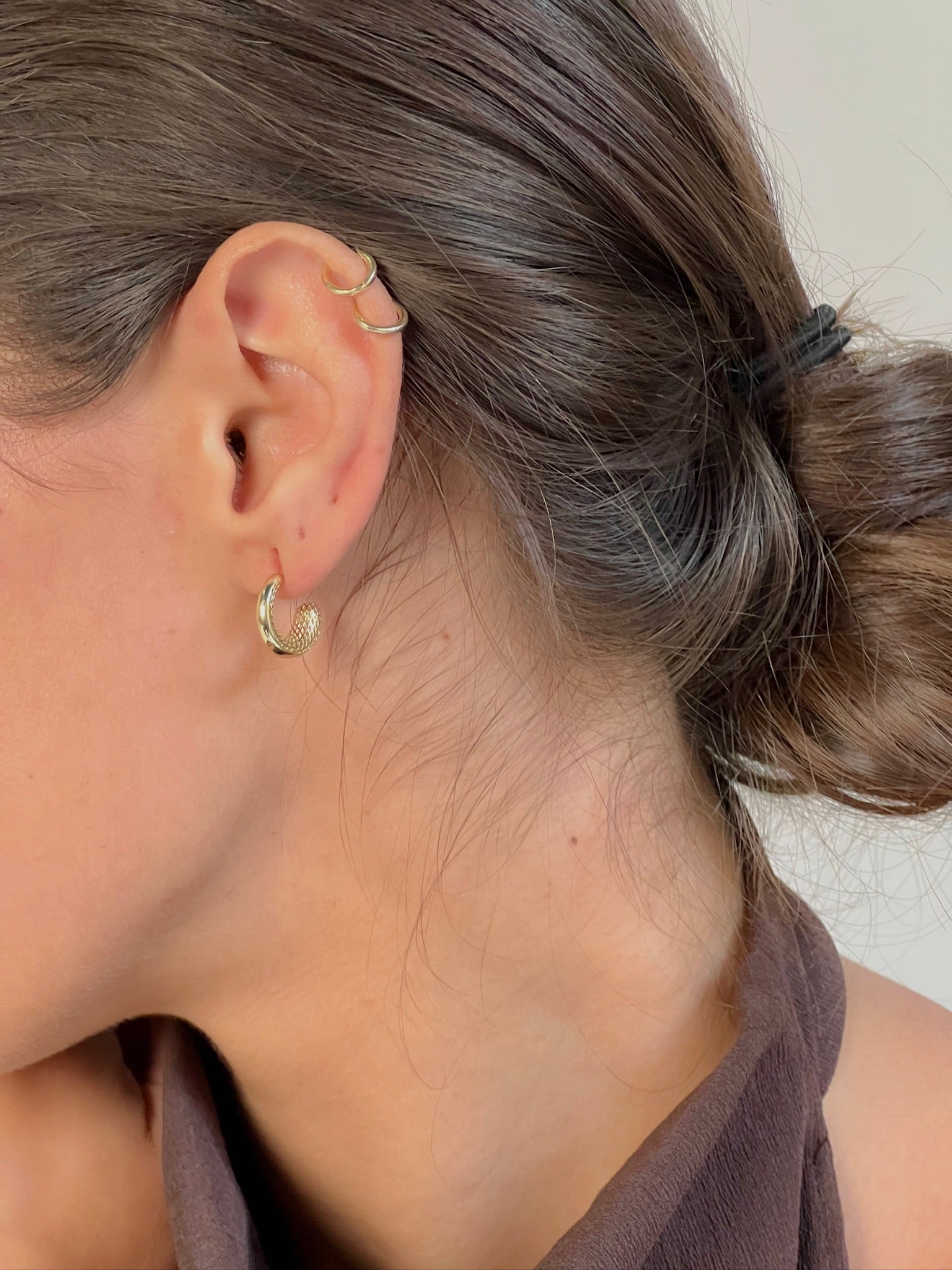 The Crescent Hoops are crafted in 18k solid gold with a soft, curved silhouette that hugs the ear just right. Their tapered shape gives a sleek, modern edge — bold but never loud.