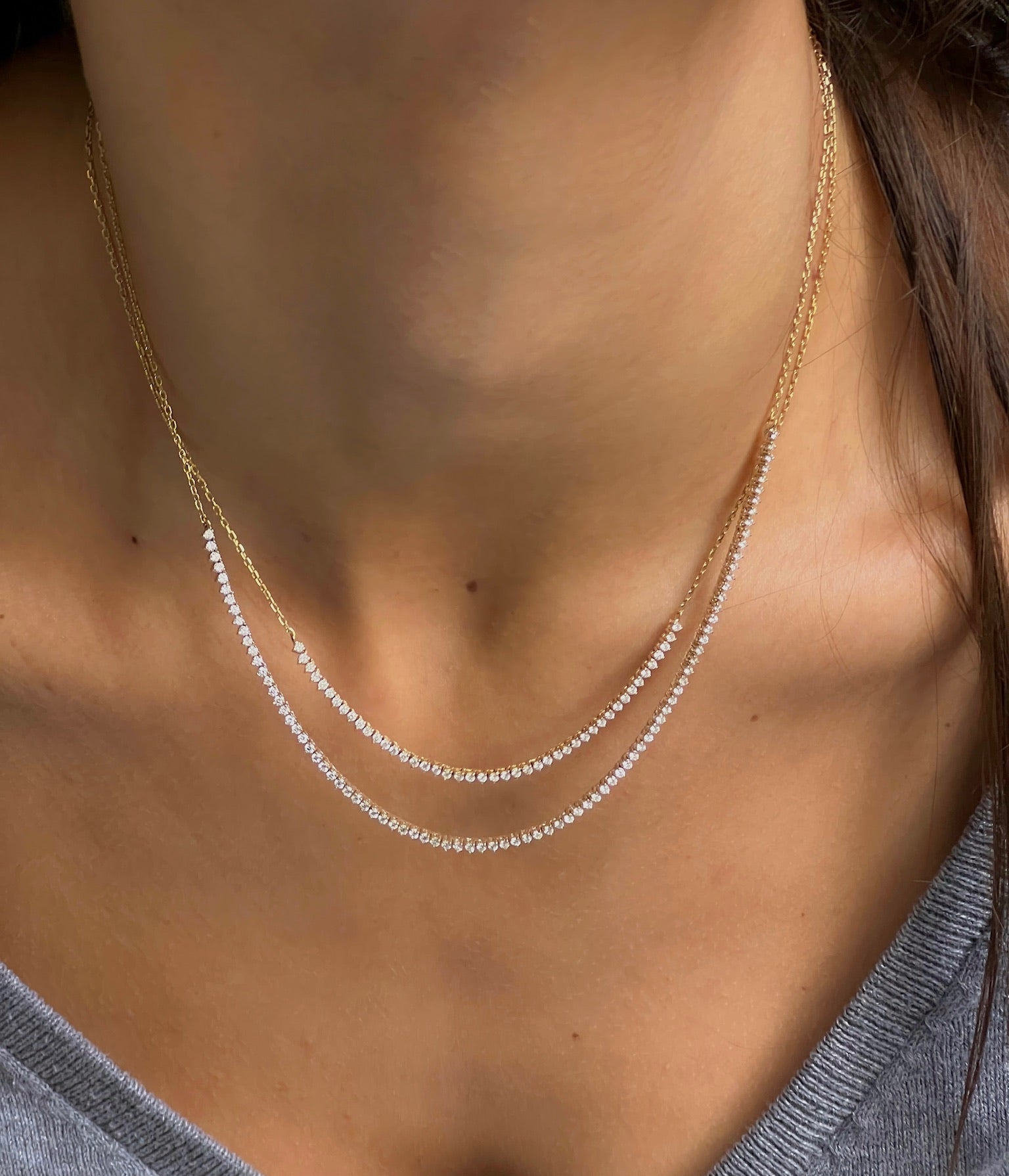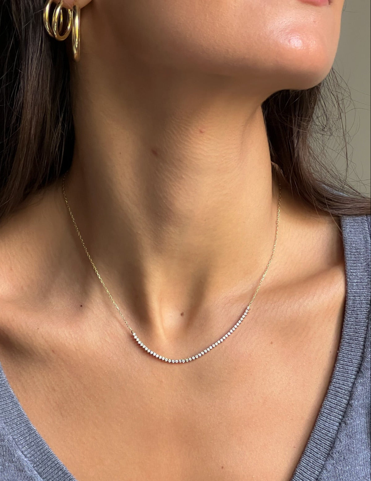 Elegant, effortless, and endlessly wearable, our Half Tennis Necklace is the definition of a timeless classic. Crafted in 18k gold and set with a seamless row of radiant diamonds, it’s designed to shine from day to night. Whether worn solo for a touch of refinement or layered for a bold statement, this piece is your go-to for sophisticated luxury.