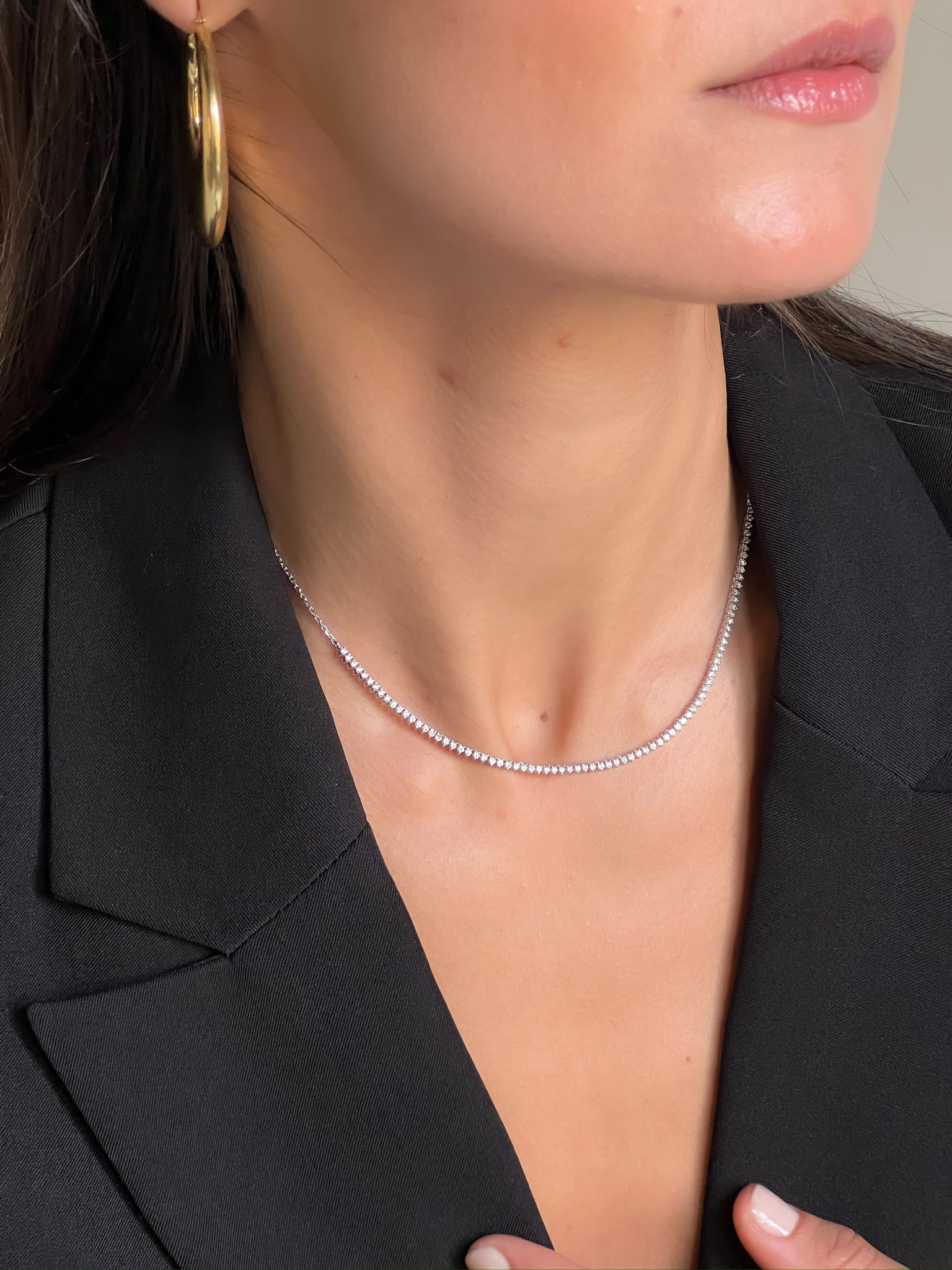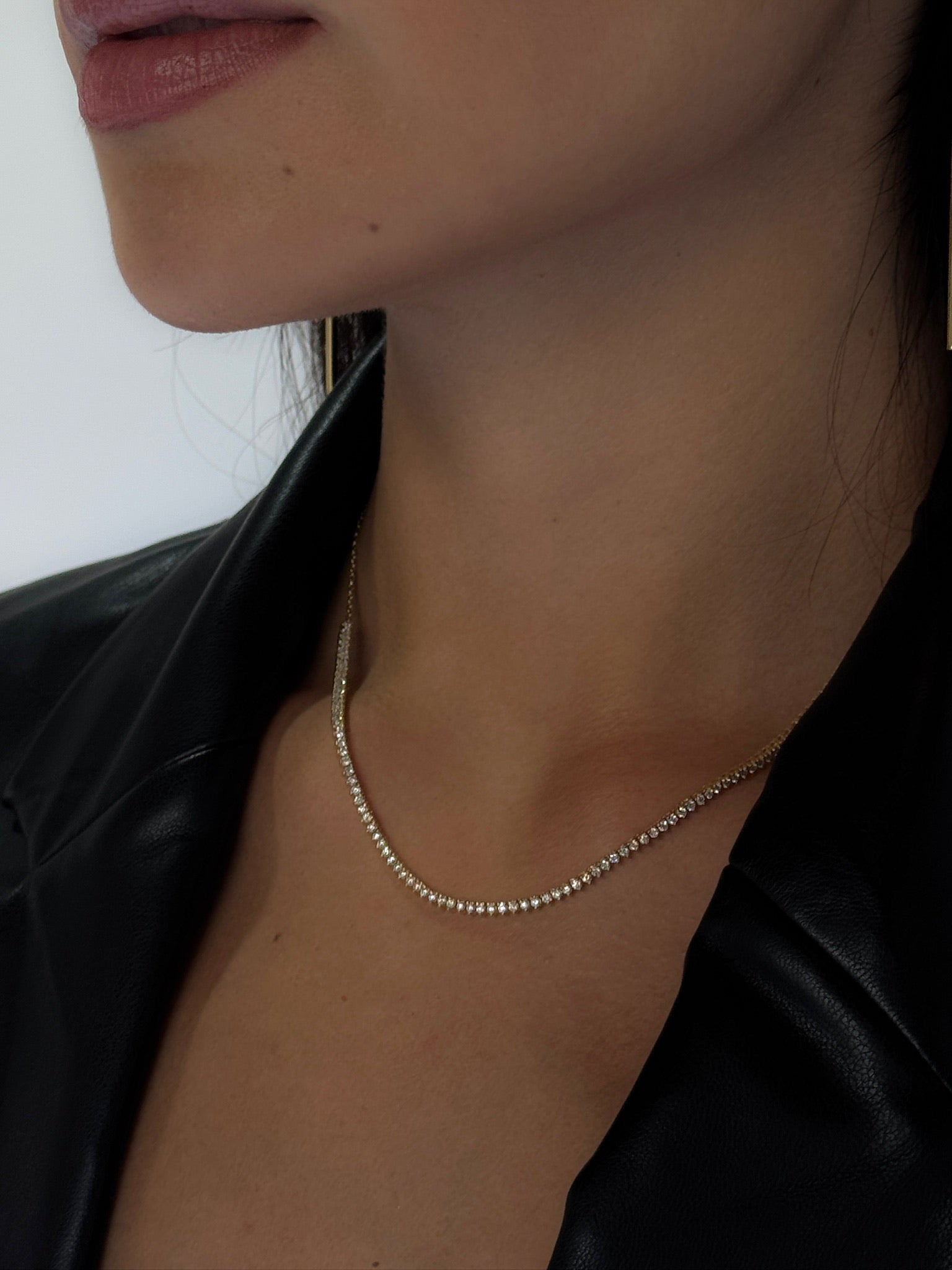 Elegant, effortless, and endlessly wearable, our Tennis Necklace is the definition of a timeless classic. Crafted in 18k gold and set with a seamless row of radiant diamonds, it’s designed to shine from day to night. Whether worn solo for a touch of refinement or layered for a bold statement, this piece is your go-to for sophisticated luxury.