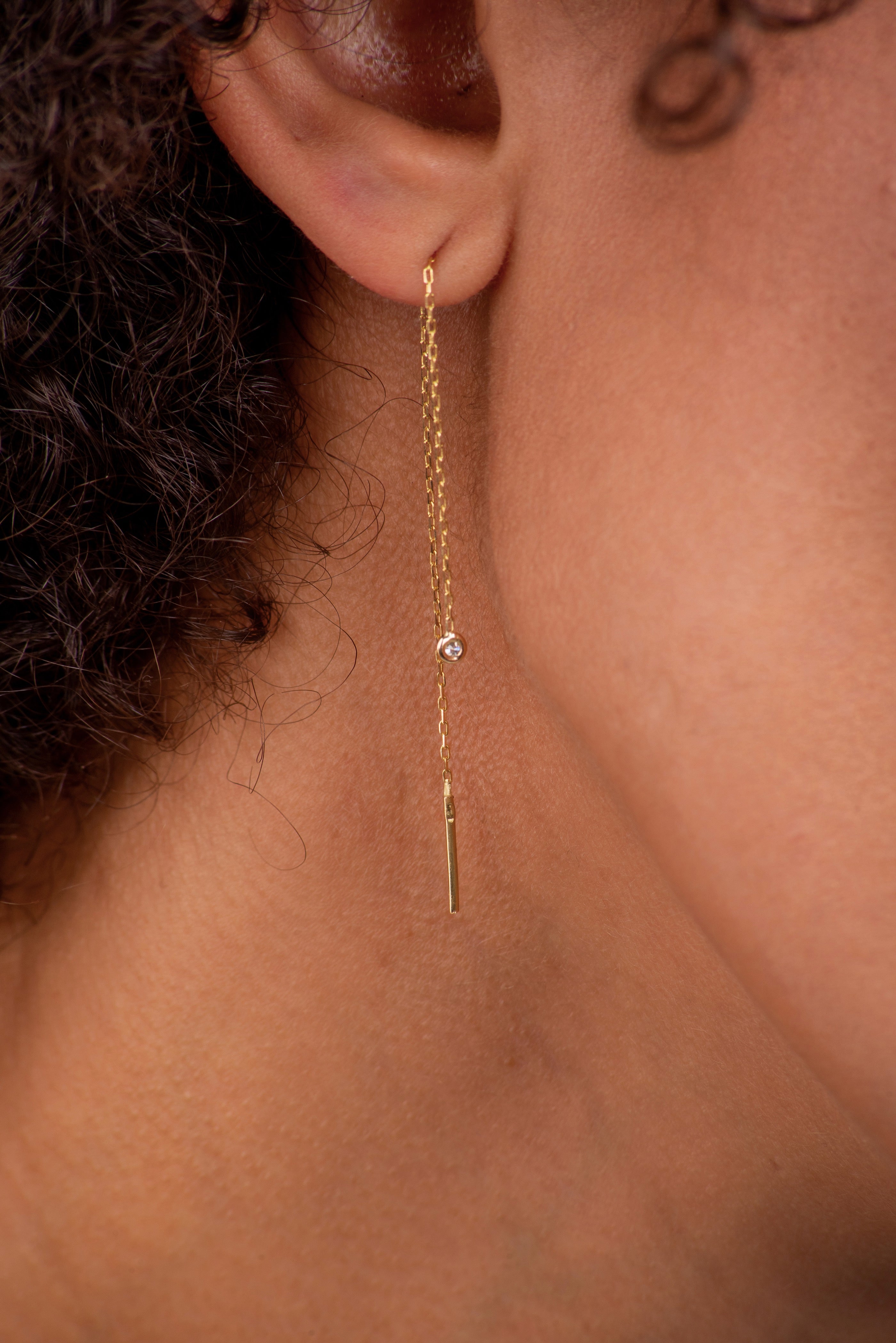 This Diamond threader earring is a delightful way to add a touch of elegance to any outfit. With its timeless design, it’s always in style. Make a statement and stand out beautifully with this charming earring!