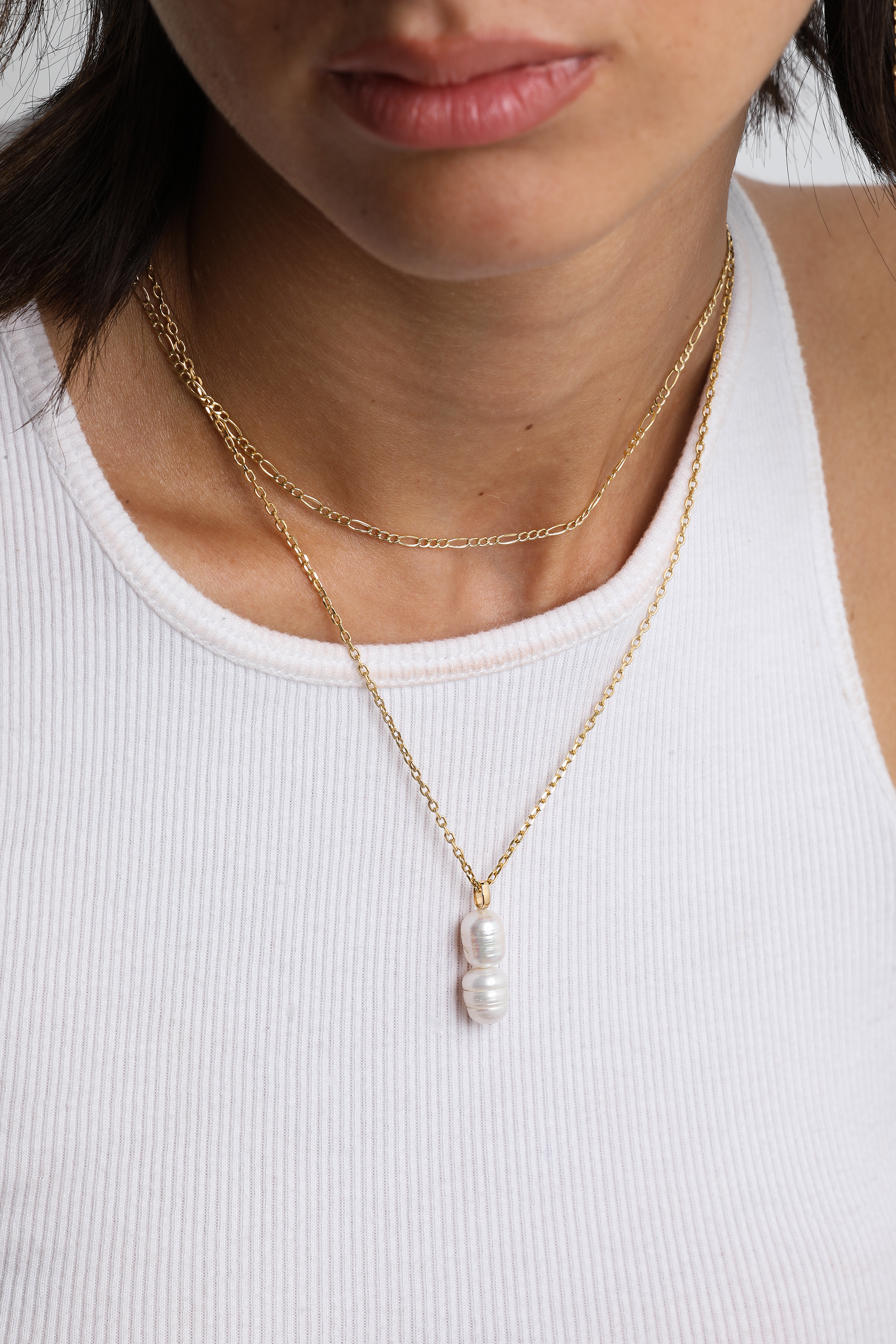 This lovely double pearl pendant is a perfect addition to any wardrobe. Crafted in 18K solid gold and featuring beautiful freshwater cultured pearls, it's a timeless design that looks elegant and sophisticated with a T-shirt or dress. Wear it alone for a simple, understated look or layer it with other necklaces for a more dramatic effect.