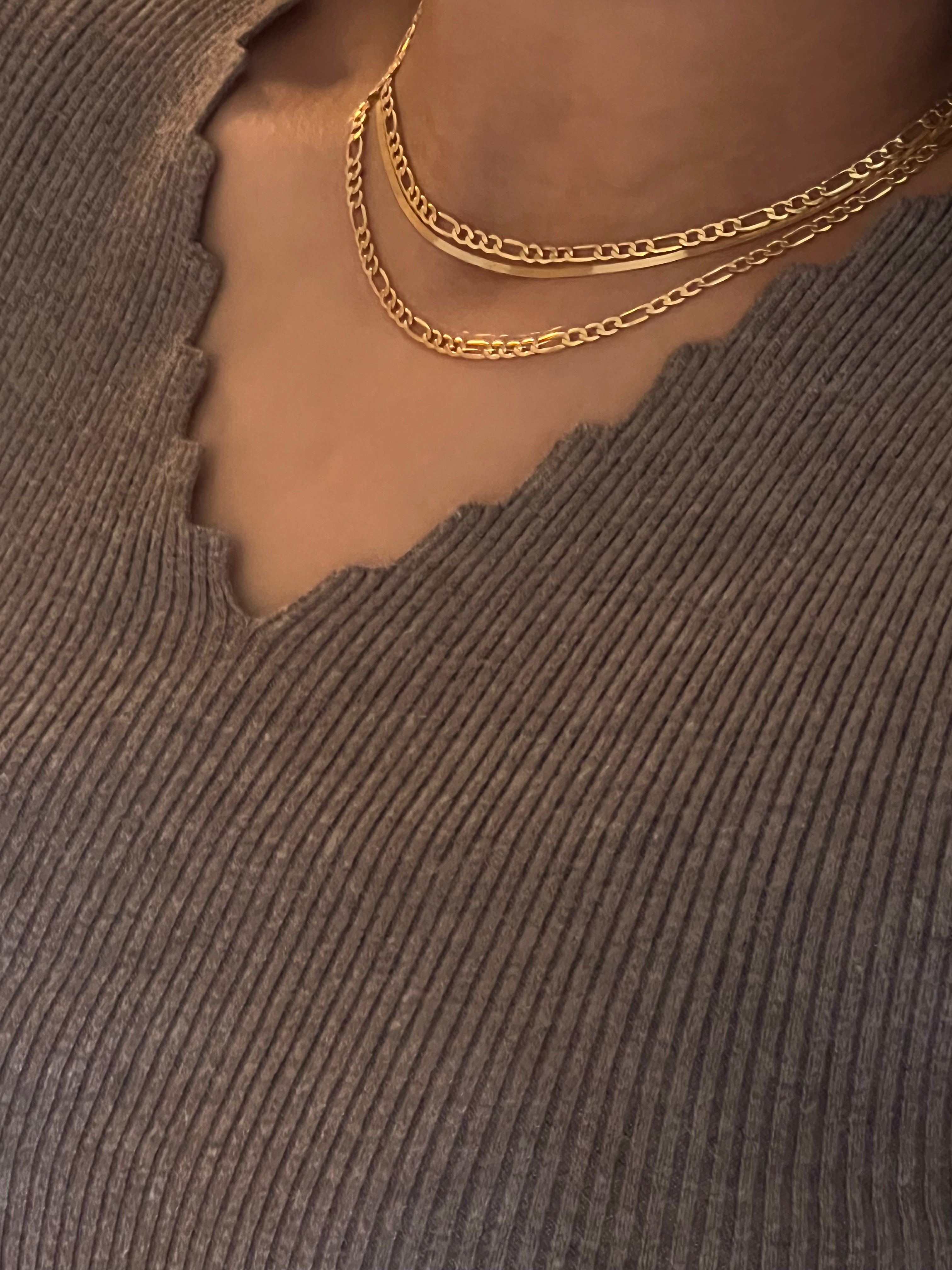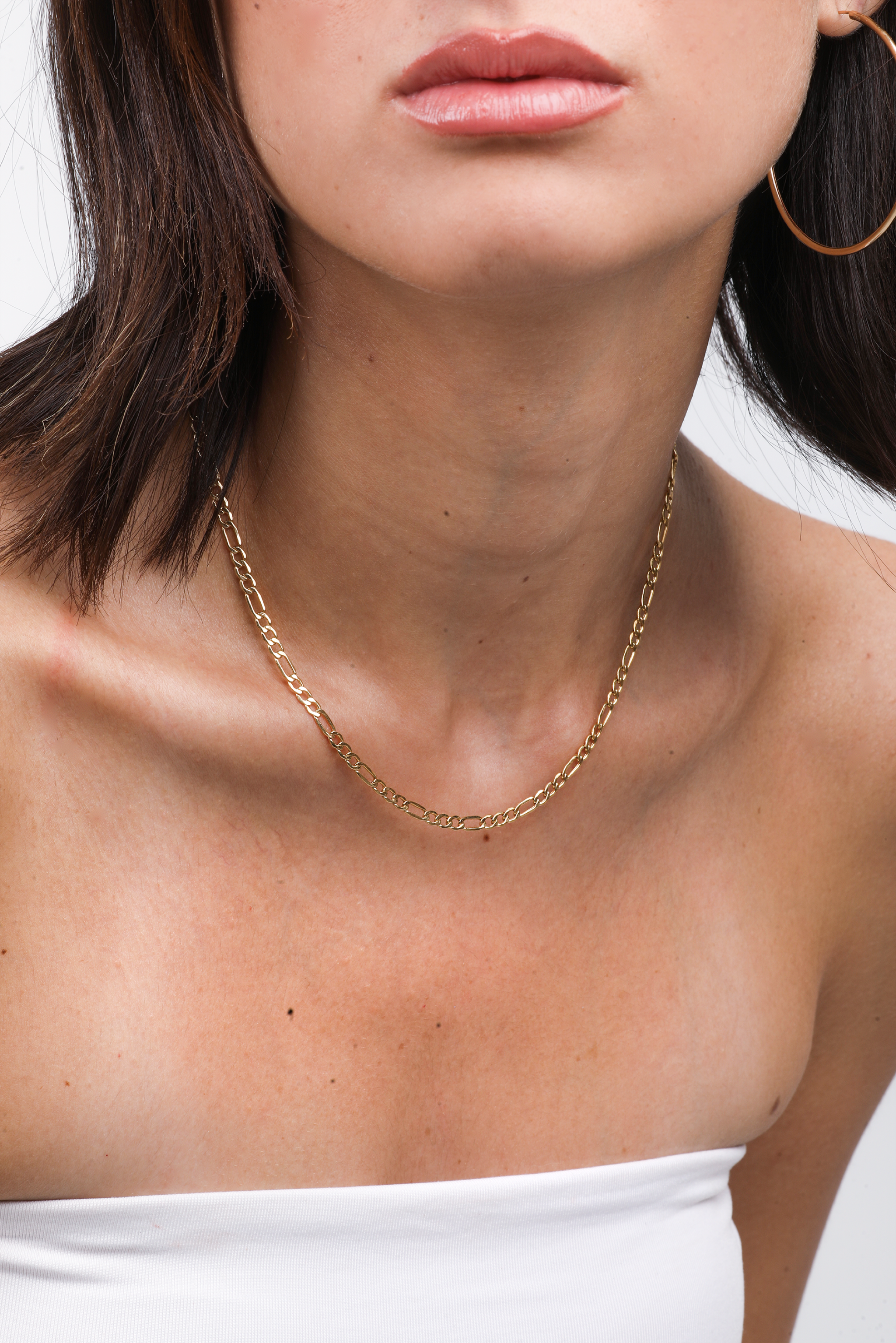 This Figaro necklace is a classic and timeless piece that is sure to add a touch of elegance to any outfit. Its unique design will take your look to the next level, making it perfect for everyday wear. Get this must-have necklace and elevate your style!