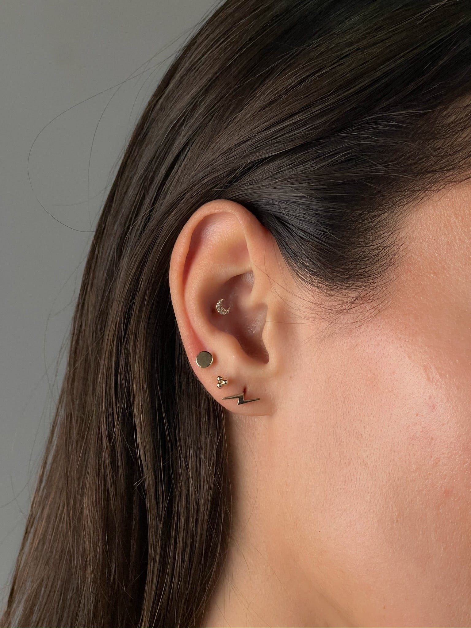 Our flat-back studs are 18k solid gold and designed for all-day comfort. They’re perfect for sensitive ears and safe for new or healed piercings. They're minimal, secure, and effortlessly stylish—a stacking essential.