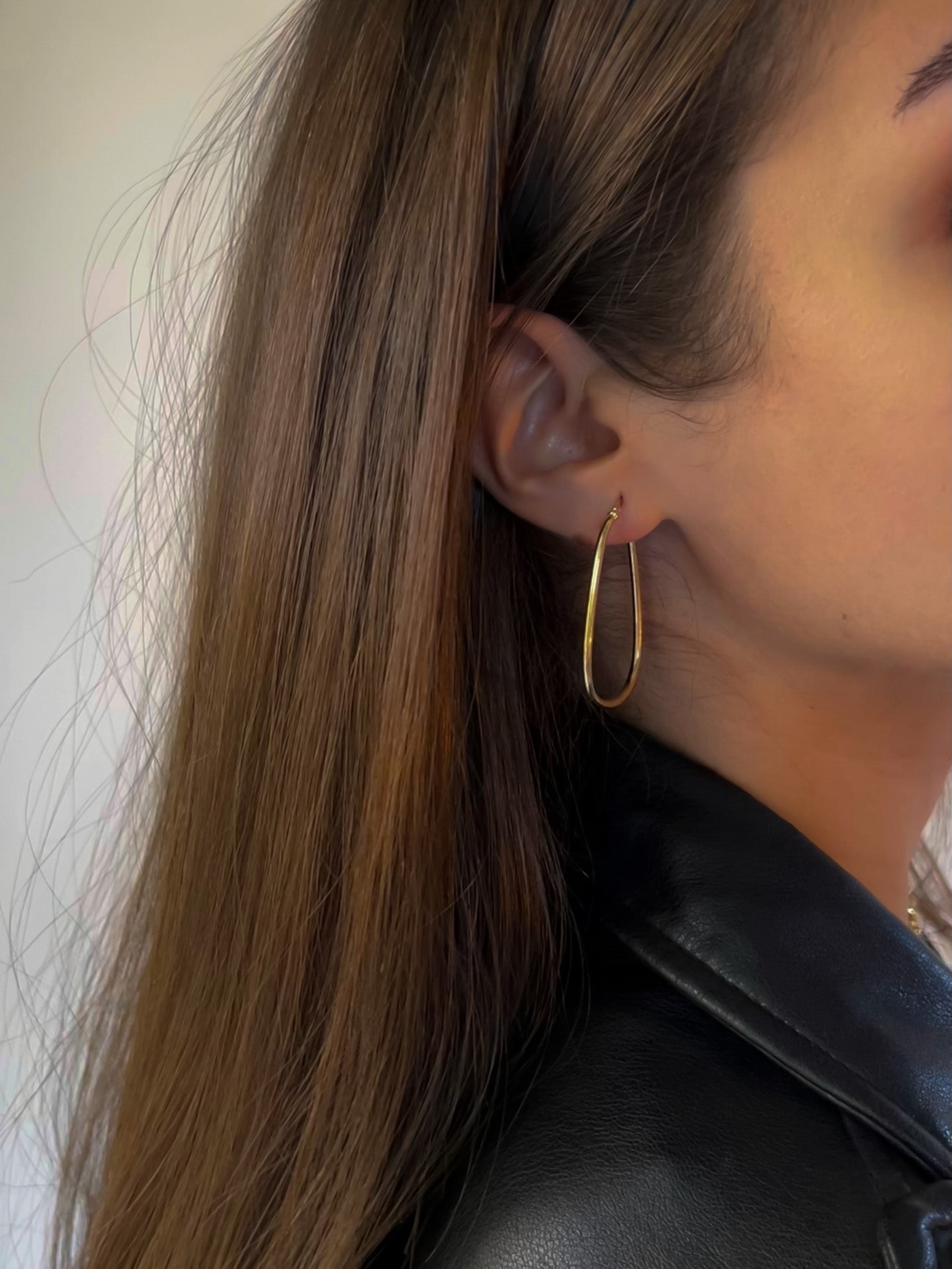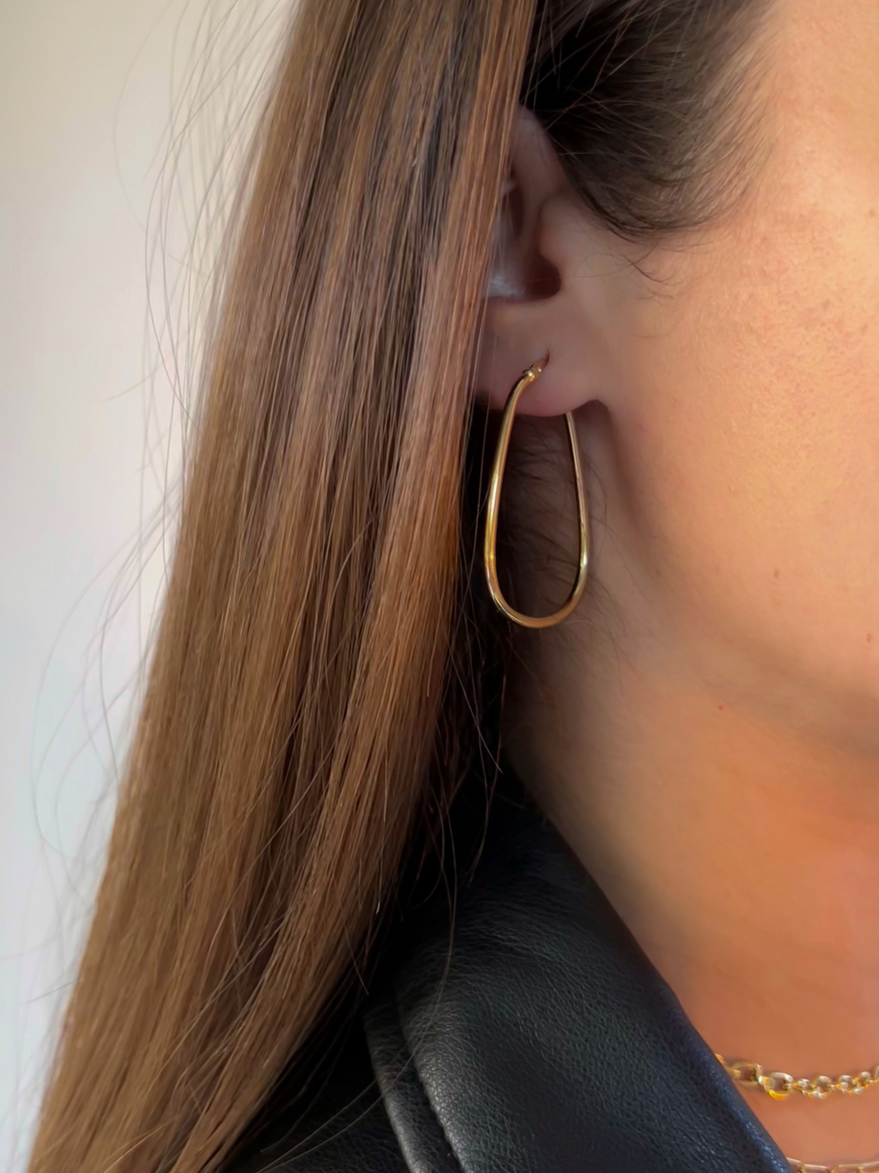 Elevate your style with these chic oval hoop earrings. The sleek and versatile design effortlessly complements any outfit, making them a must-have jewelry for everyday elegance and understated glamour.