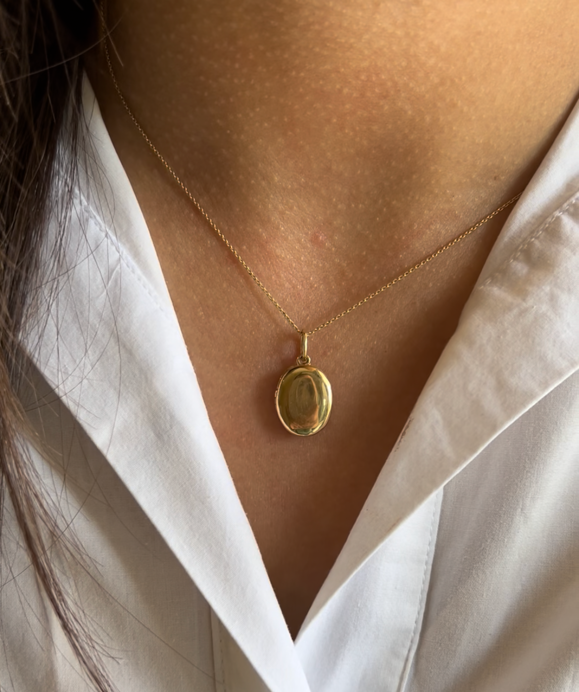 This Oval Locket Necklace is the perfect way to keep a special memory close to your heart. This locket necklace is a beautiful reminder of a cherished moment. The locket allows you to add any picture inside, so you can always remember the special times with your loved ones. This necklace is an elegant and timeless piece that will be cherished by you and everyone around you for years to come.