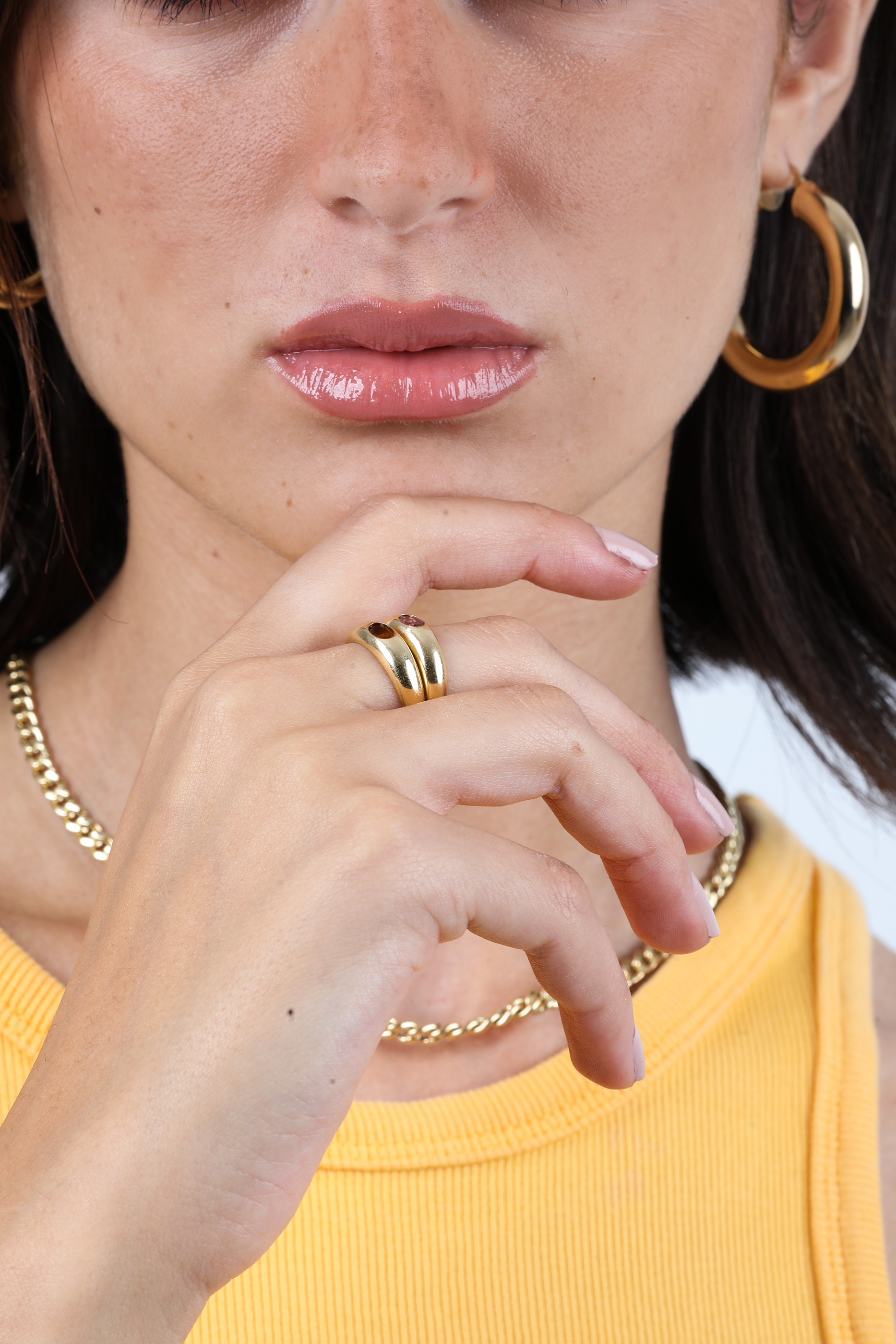Make a bold statement with this Yellow Tourmaline Dôme Ring! This ring is set with a beautiful precious gemstone and adds a dazzling pop of color to any outfit. Wear it alone for a subtle look, or stack it with other jewelry for a more dramatic effect - just note that the color may vary slightly from the pictures due to the lighting.