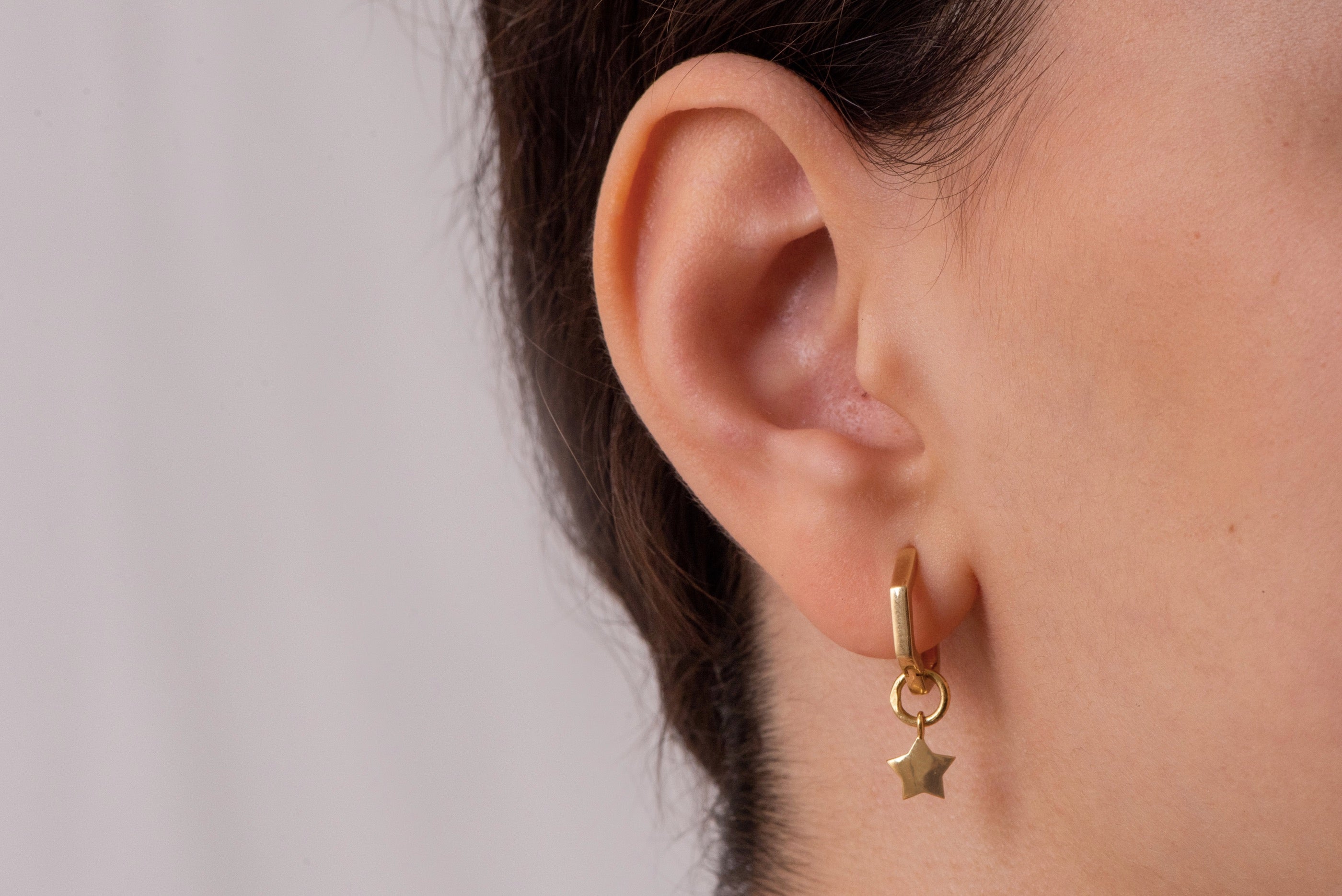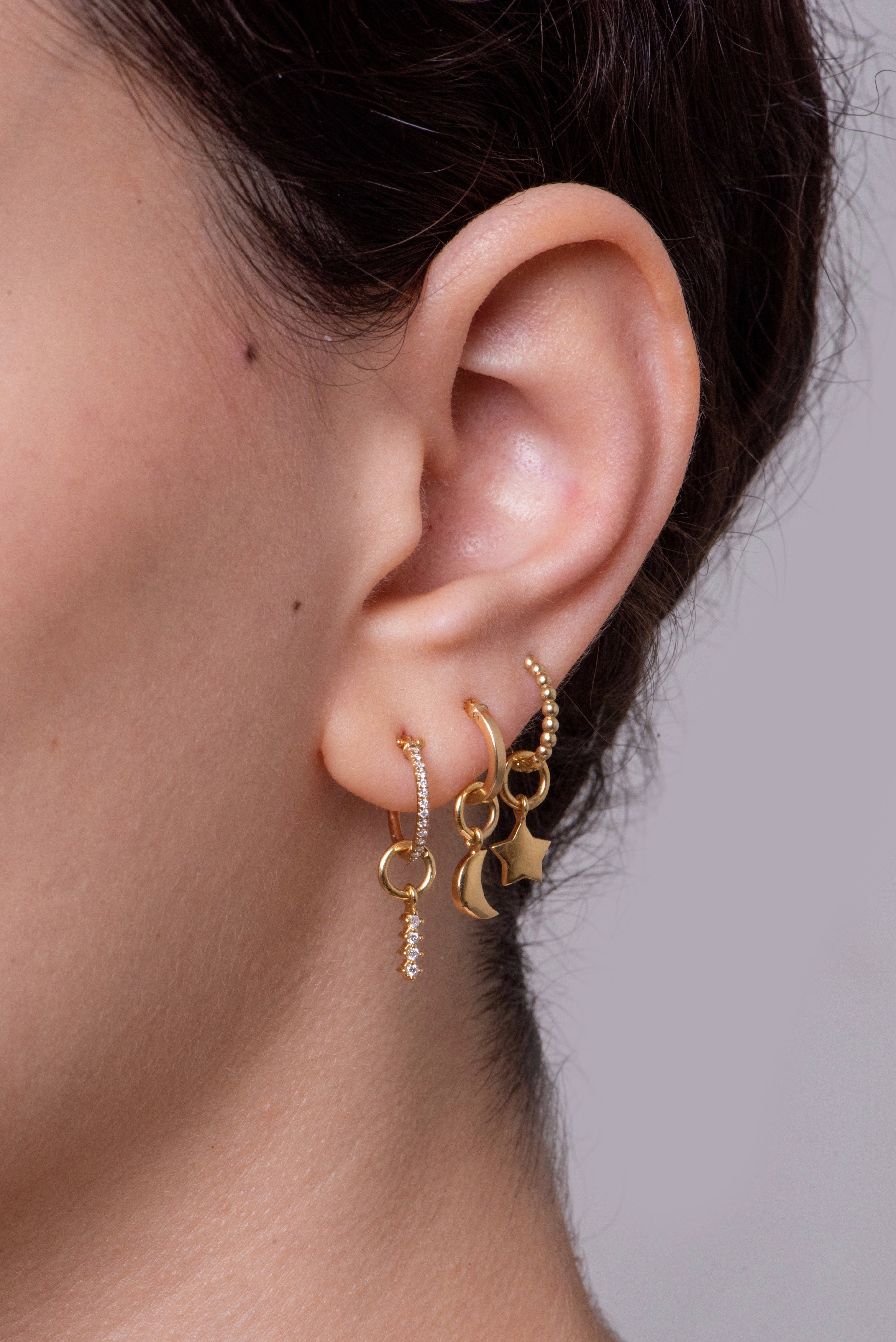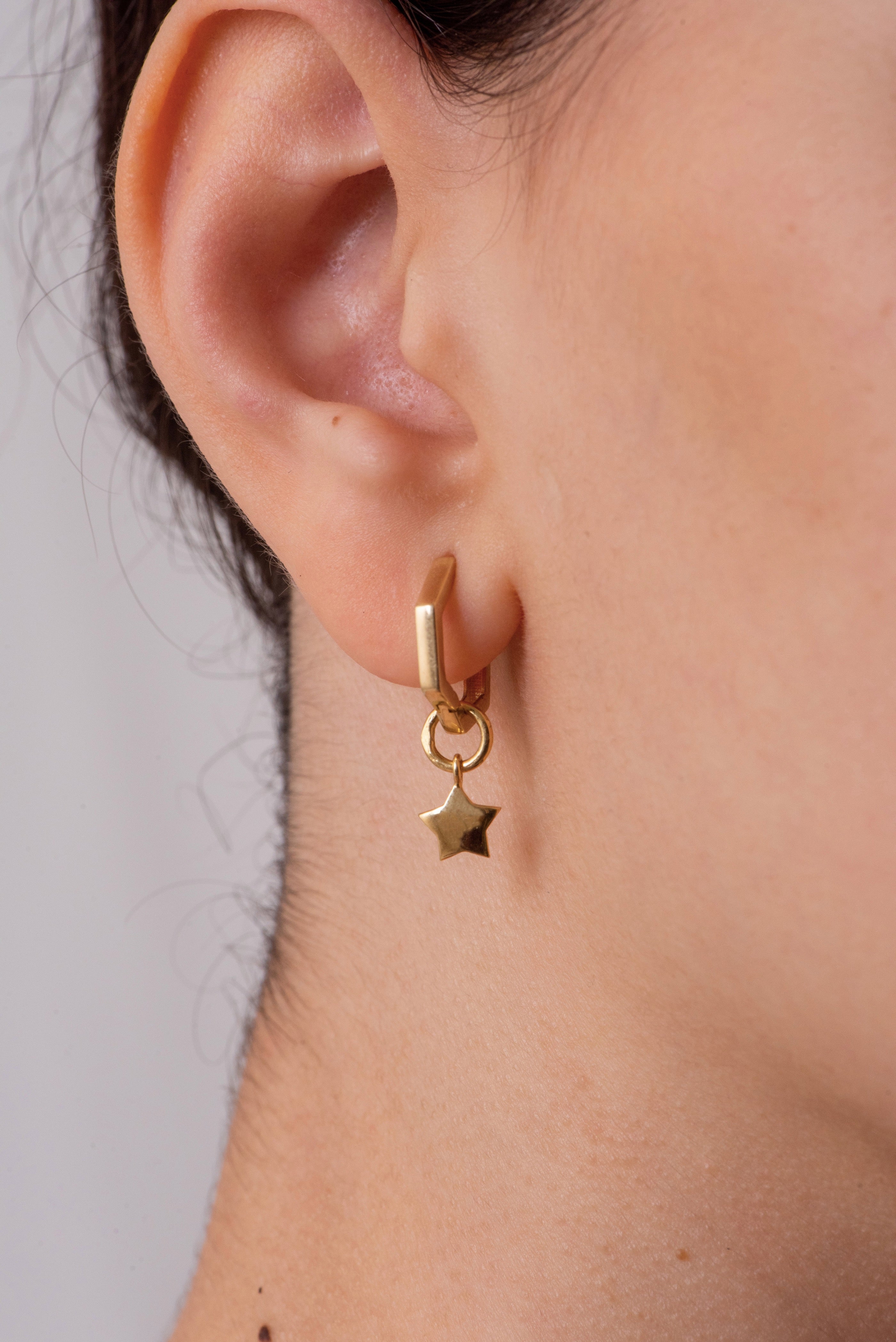 Add a touch of star power to your look with the Star Hoop Charm. A subtle sparkle and eye-catching design make this charm the perfect way to give your earring stack a high-impact, yet simple look. The star hoop charm has an easy-to-wear design that is suitable for everyday wear. Whether worn alone or as part of a curated stack, this Star Hoop Charm will add a touch of sparkle and sophistication to any ensemble.