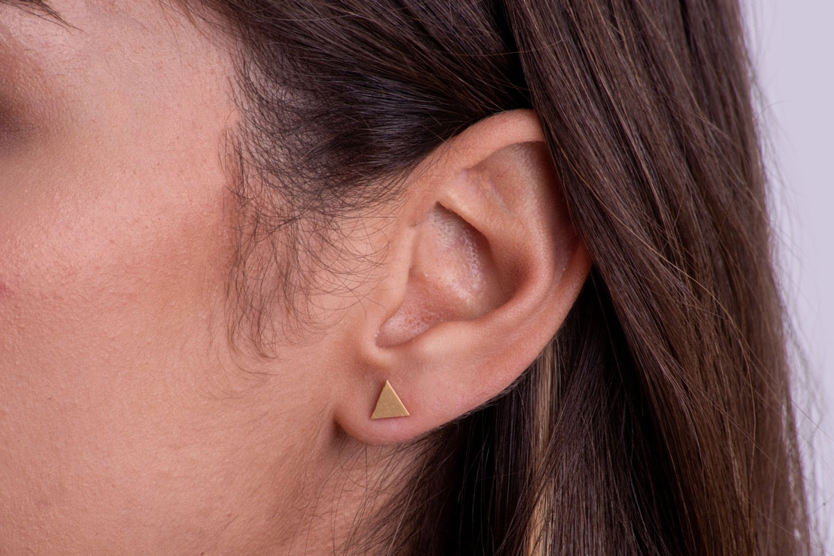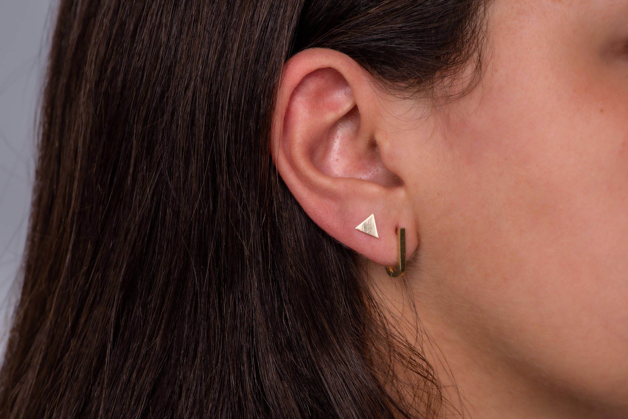 Triangle earrings with a geometric design and a butterfly clasp, are perfect for layering with other small earrings. You select the ideal second, third, and fourth holes.
