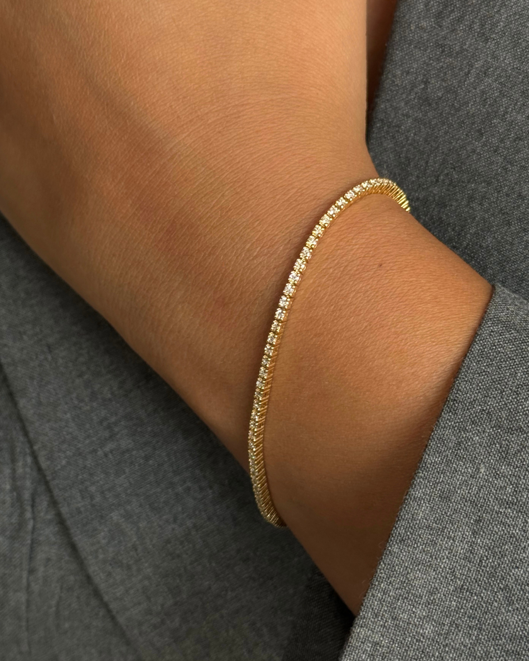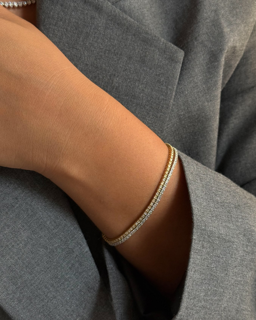 Crafted in 18K solid gold and set with natural diamonds, each bracelet brings timeless luxury into the everyday. Every stone is chosen for its brilliance, every detail designed to move effortlessly with you. Bracelets are HRD Antwerp Certified for guaranteed authenticity and quality