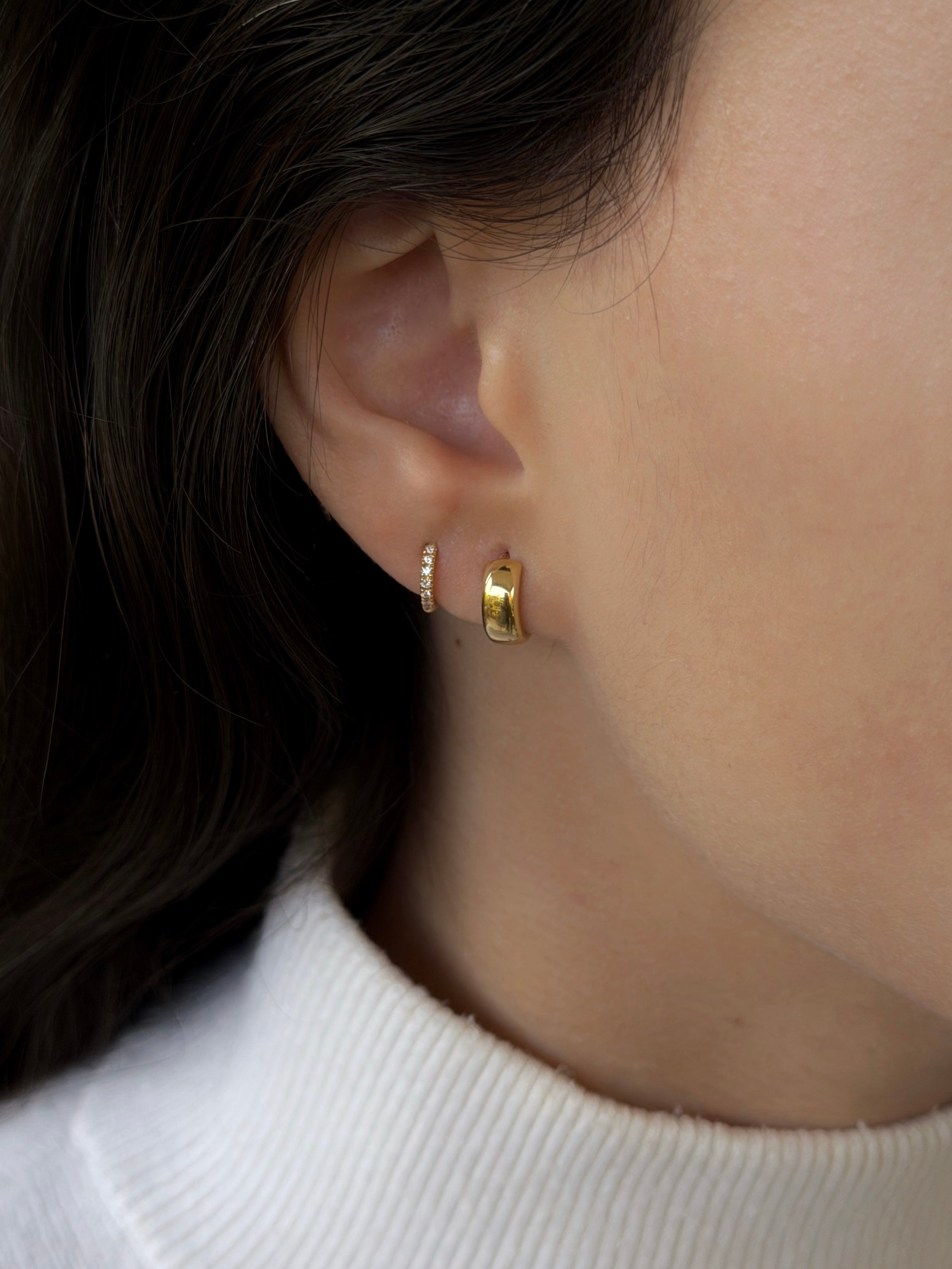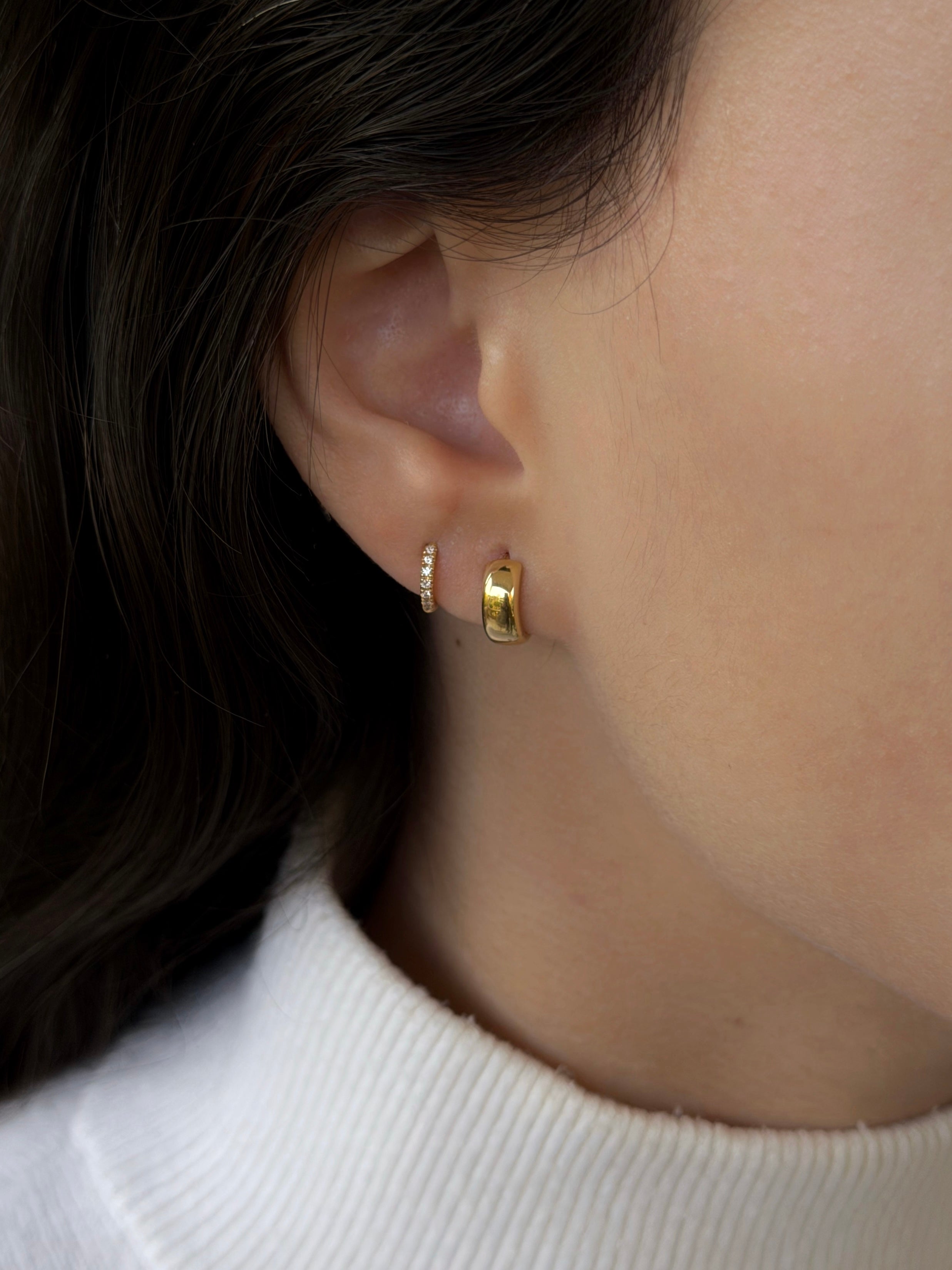 The Cigar Huggie Hoops are bold in the simplest way. Their smooth, rounded shape and thicker profile give them a sculpted shine that stands out without trying. Crafted in solid 18K gold, they bring a modern edge to a timeless classic.