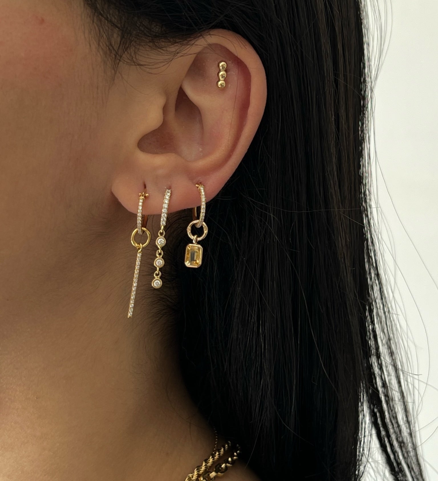 Emerald Cut Citrine Hoop Charm