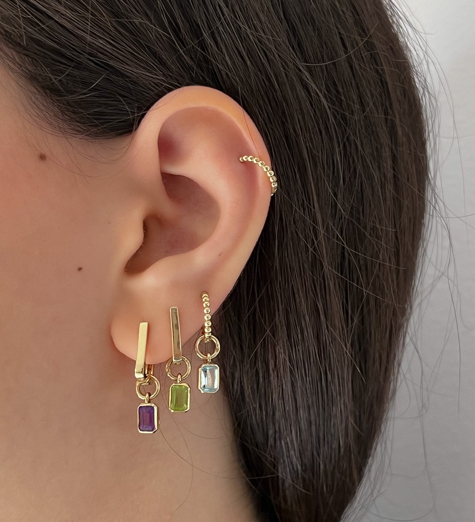Emerald Cut Peridot Hoop Charm