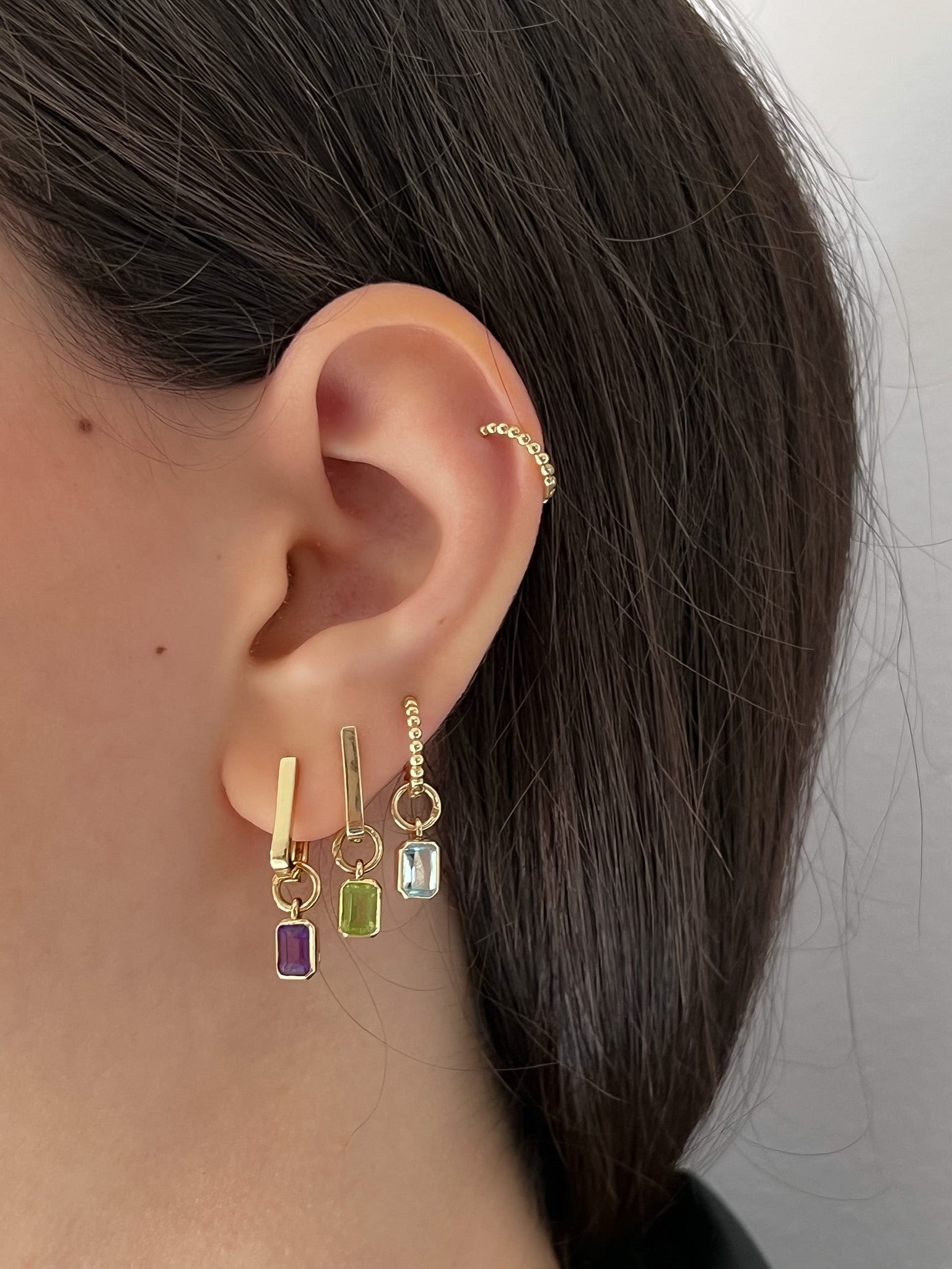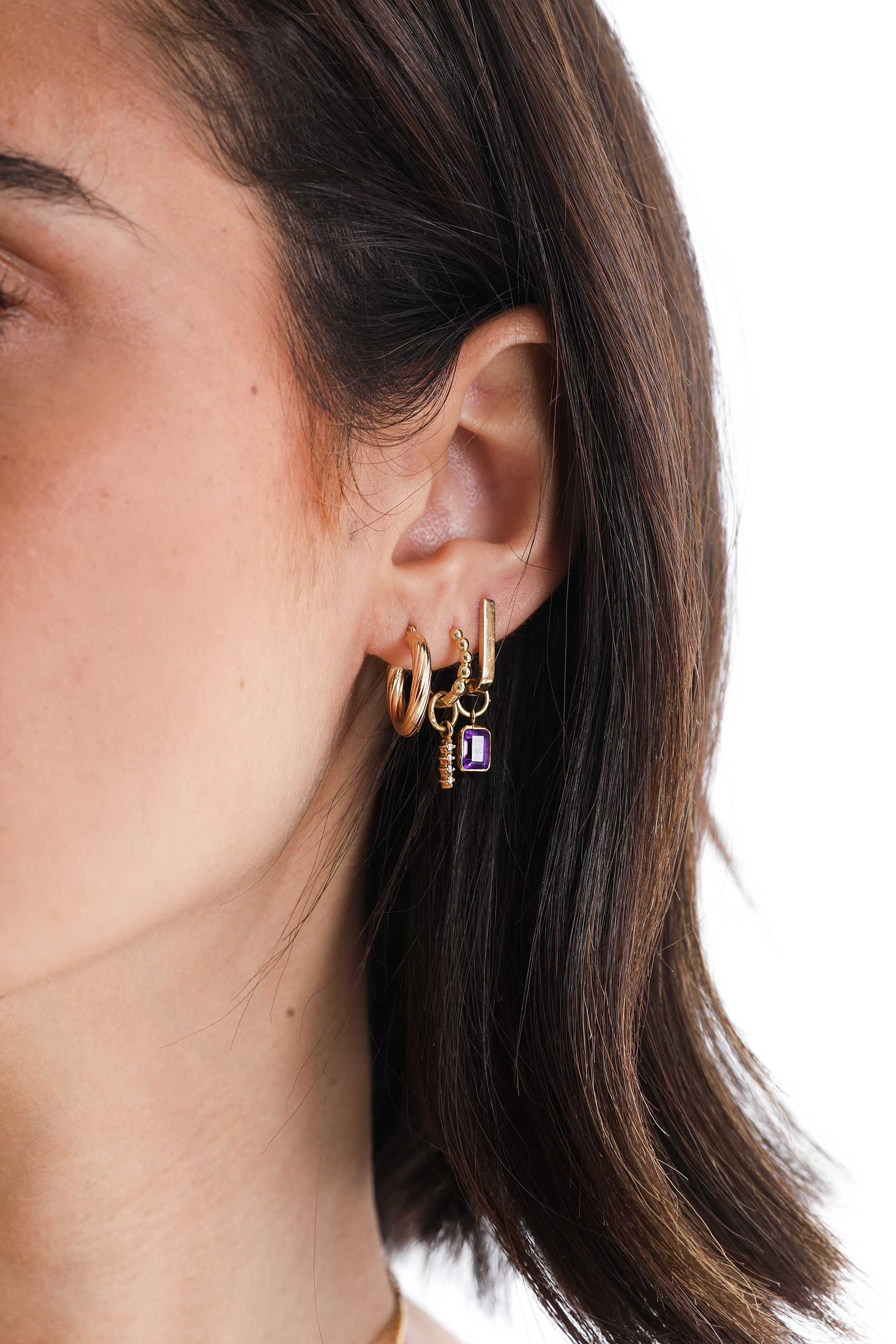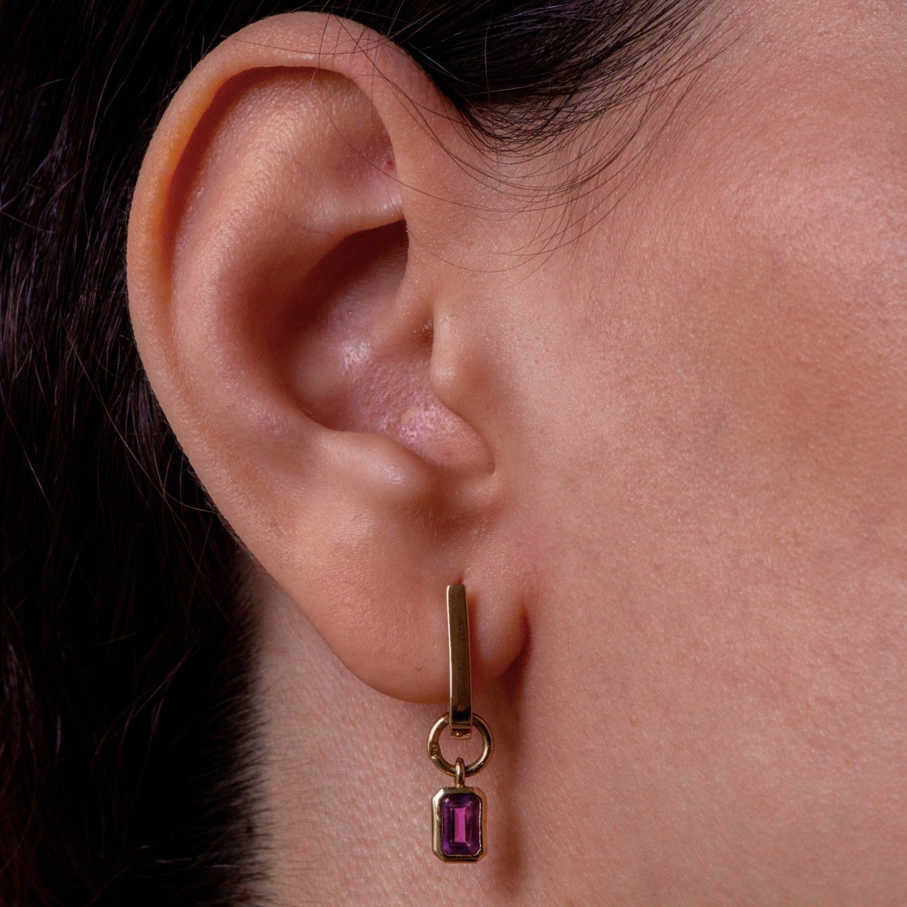 Our Emerald Cut Amethyst Hoop Charm is a gorgeous way to add a special touch to any everyday hoop. This charm is crafted with a genuine emerald cut amethyst, known for its vibrant color and luminescent beauty. Your hoop will look even more stylish and eye-catching when adorned with this dazzling gemstone charm. Swap it out any time for a fresh new look, and enjoy the timeless beauty of this exquisite piece!