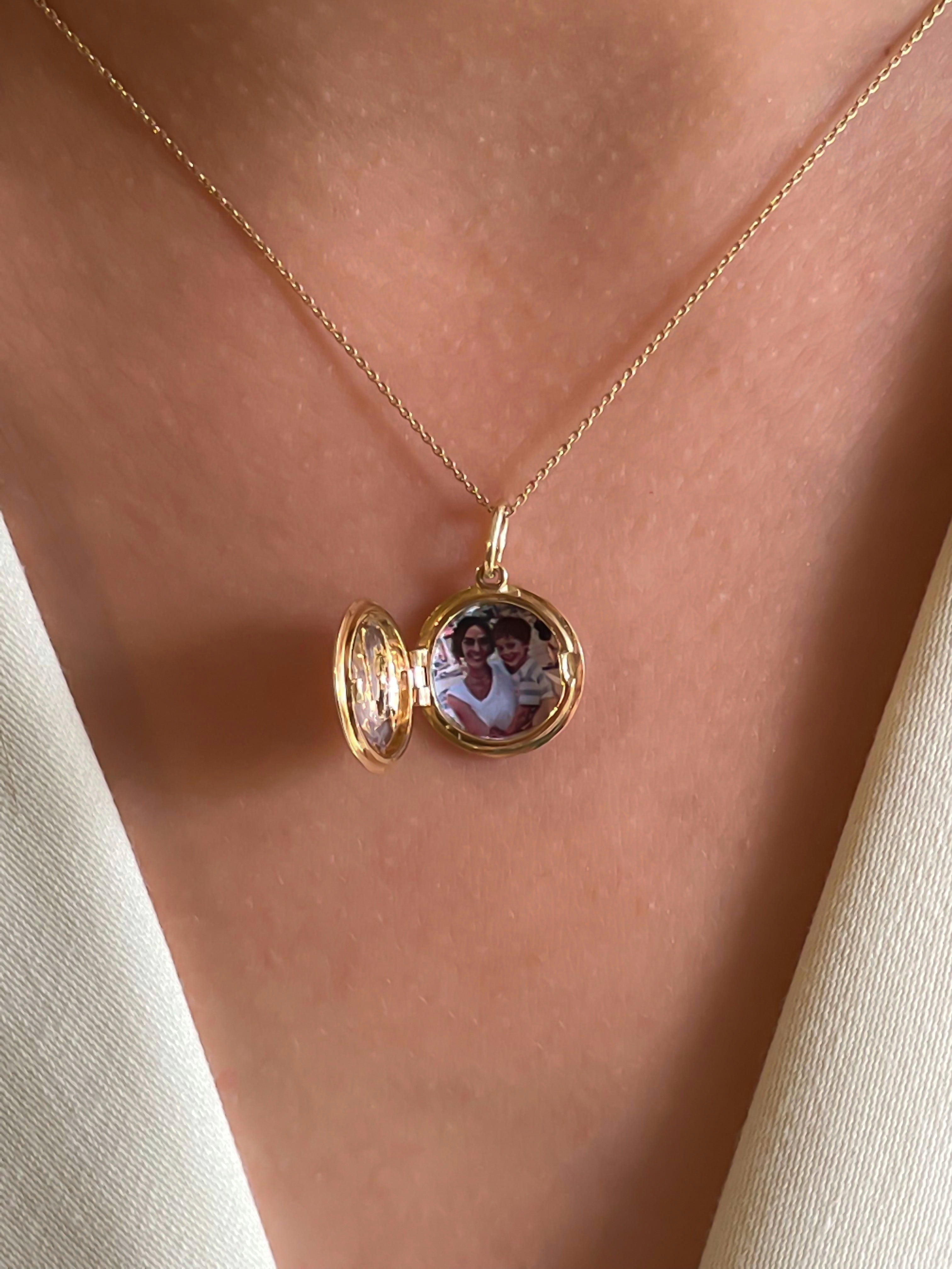 This Round Locket Necklace is the perfect way to keep a special memory close to your heart. This locket necklace is a beautiful reminder of a cherished moment. The locket allows you to add any pictures inside, so you can always remember the special times with your loved ones. This necklace is an elegant and timeless piece that will be cherished by you and everyone around you for years to come.