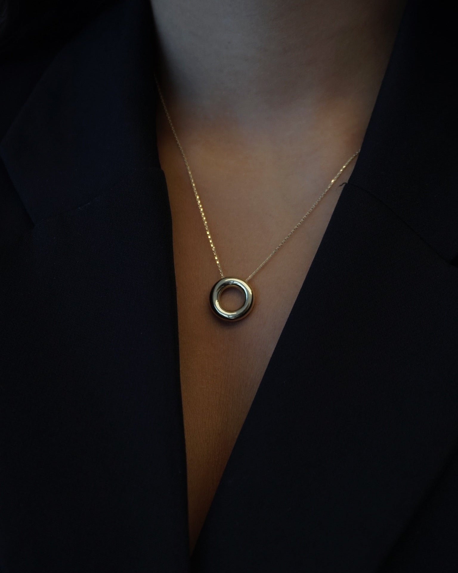 Crafted in 18K solid gold, the donut is part of the necklace itself, not a charm, sliding freely along the chain like it belongs there. An everyday piece that feels polished, playful, and just indulgent enough.
