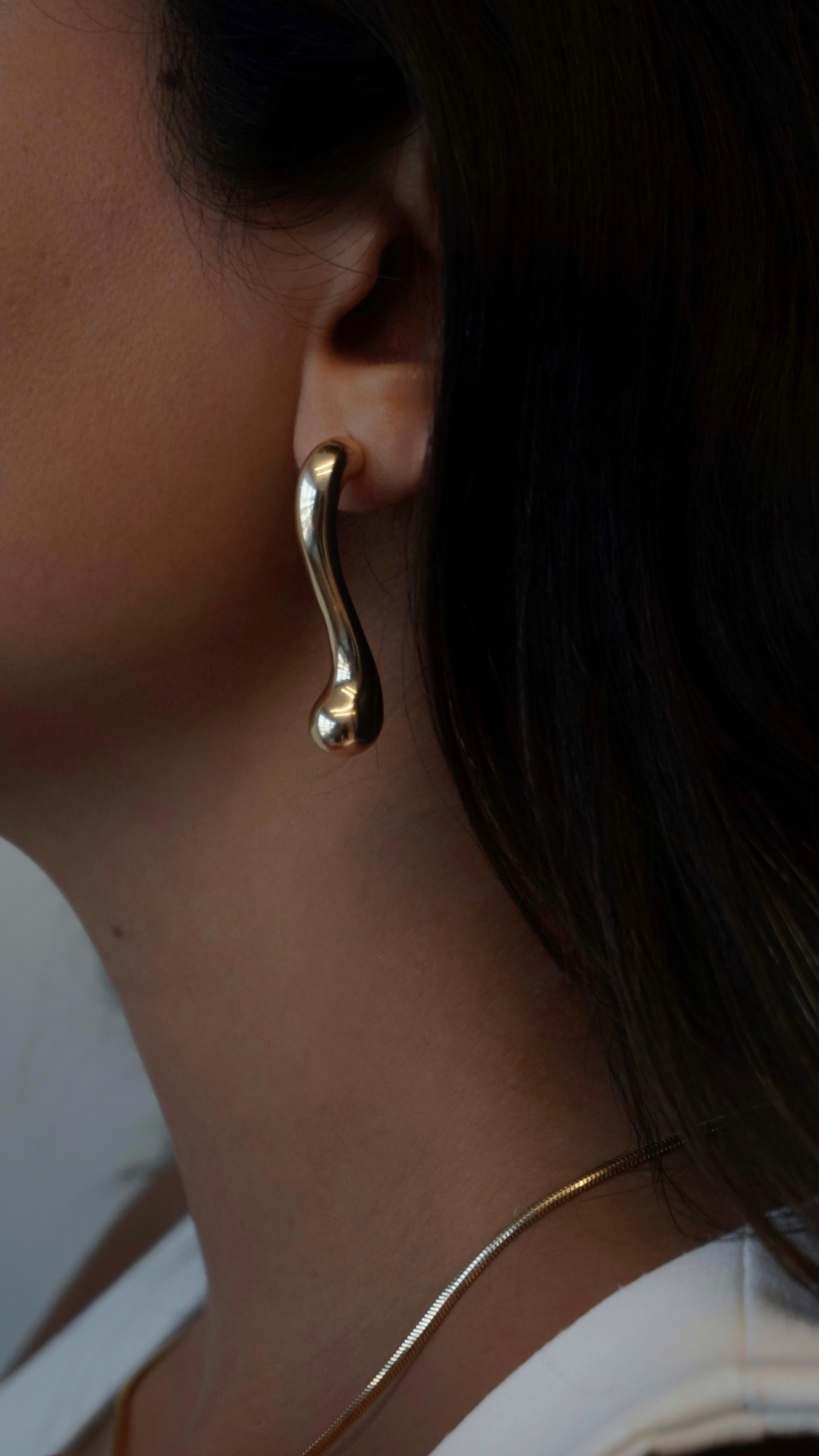 Defined by a soft fall and a fluid form, the Droplet Earrings bring quiet movement to the ear. Their shape feels natural and continuous, catching light as it shifts rather than reflects. Refined yet expressive, they add presence without weight or effort.
