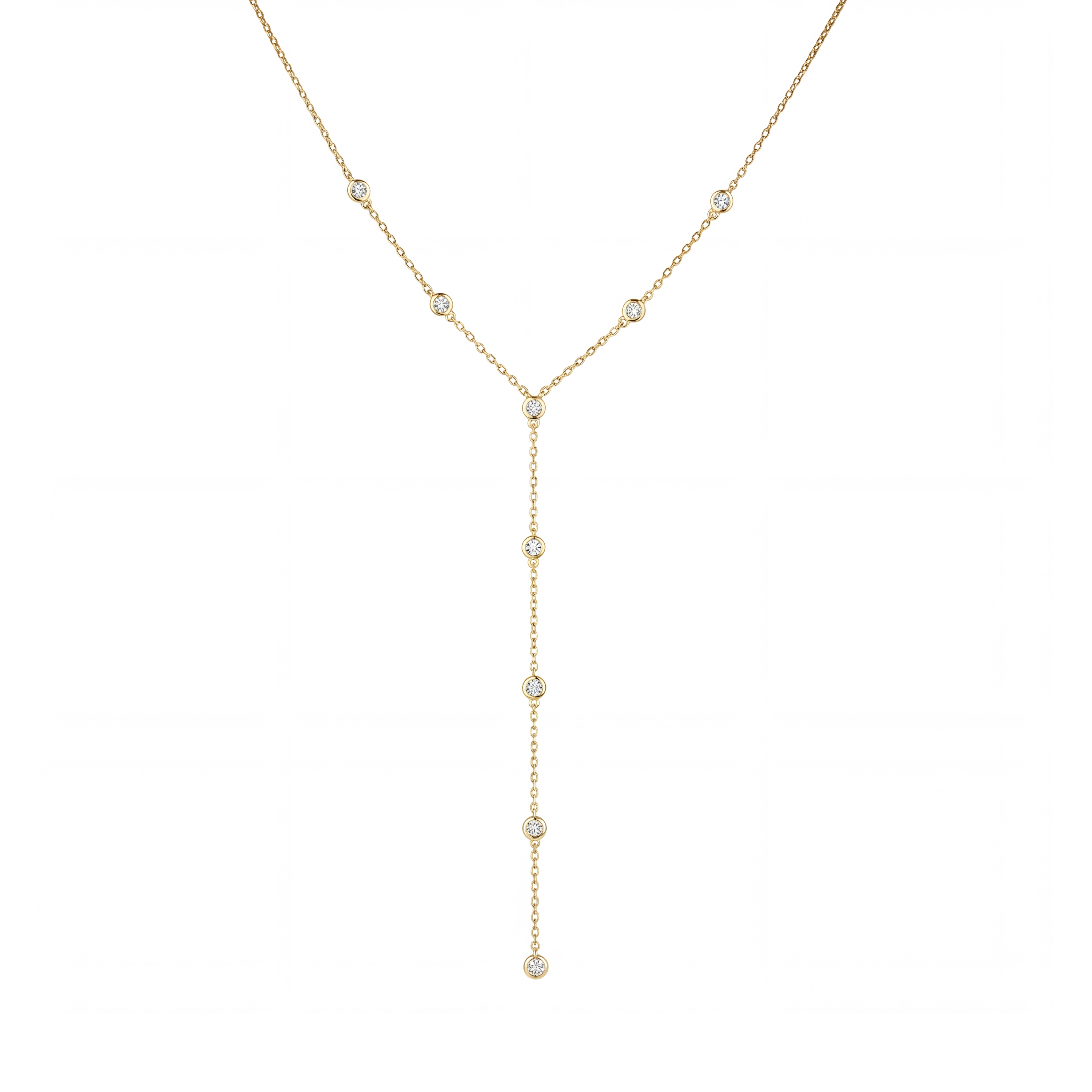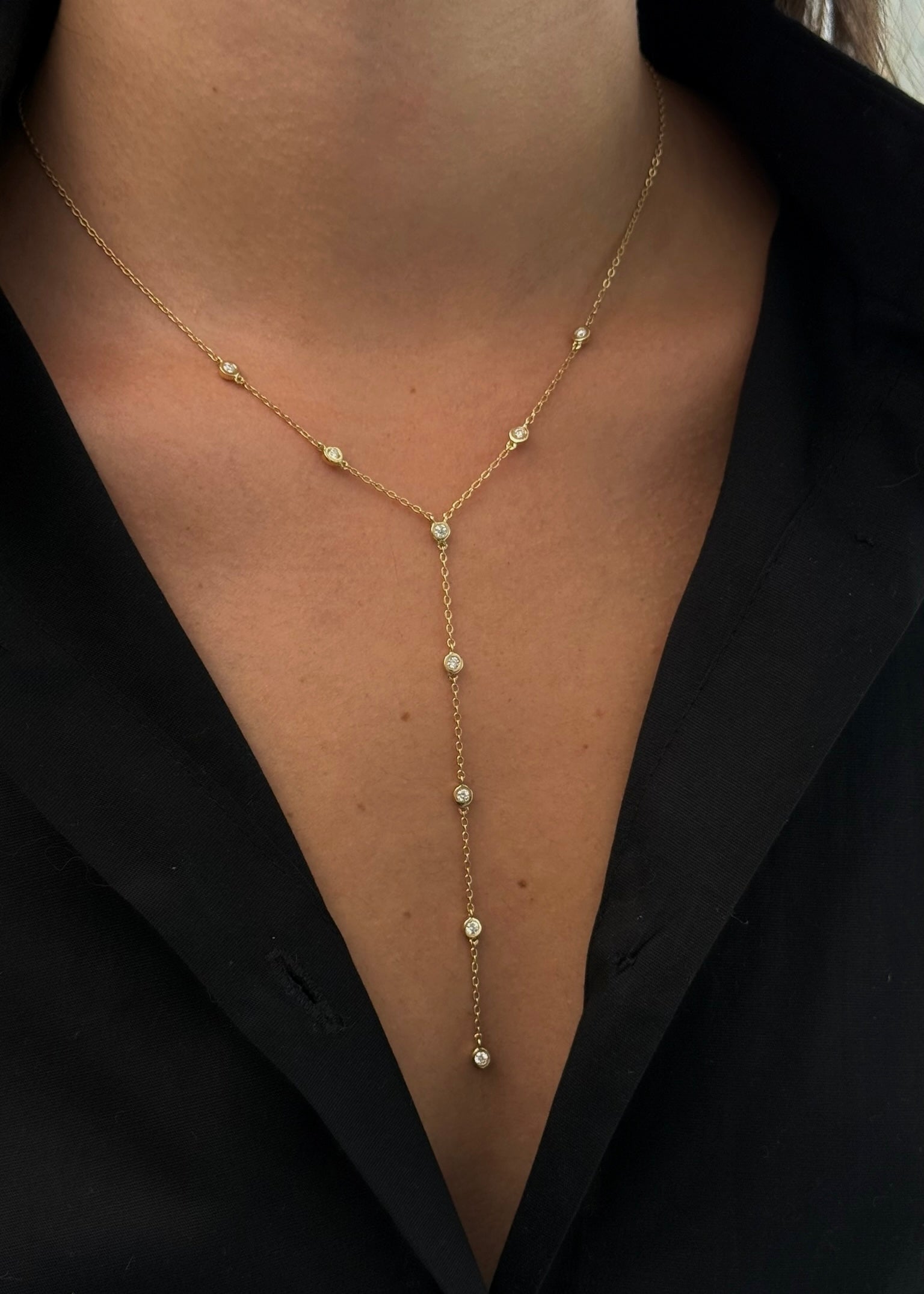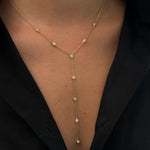 The Diamond Station Lariat Necklace plays with balance and flow, It starts simple, then one line drops and changes everything. It moves with you, subtle at first, then suddenly the detail you notice in every reflection.