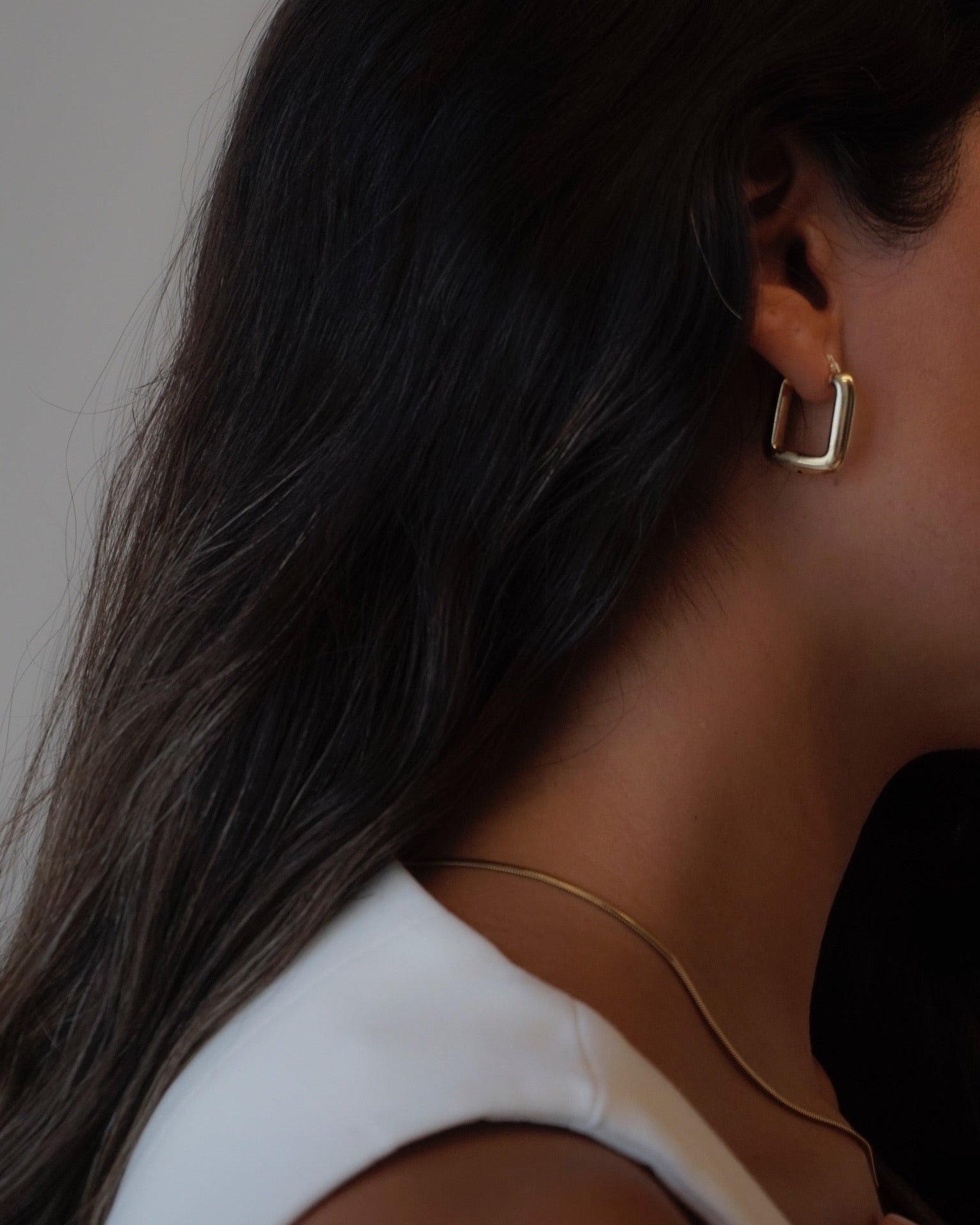These earrings bring volume to minimalism. Their smooth, curved surface gives the classic rectangular shape a soft edge and a luminous 18K gold glow. Crafted to perfection, they’re modern, sculptural, and effortlessly refined.