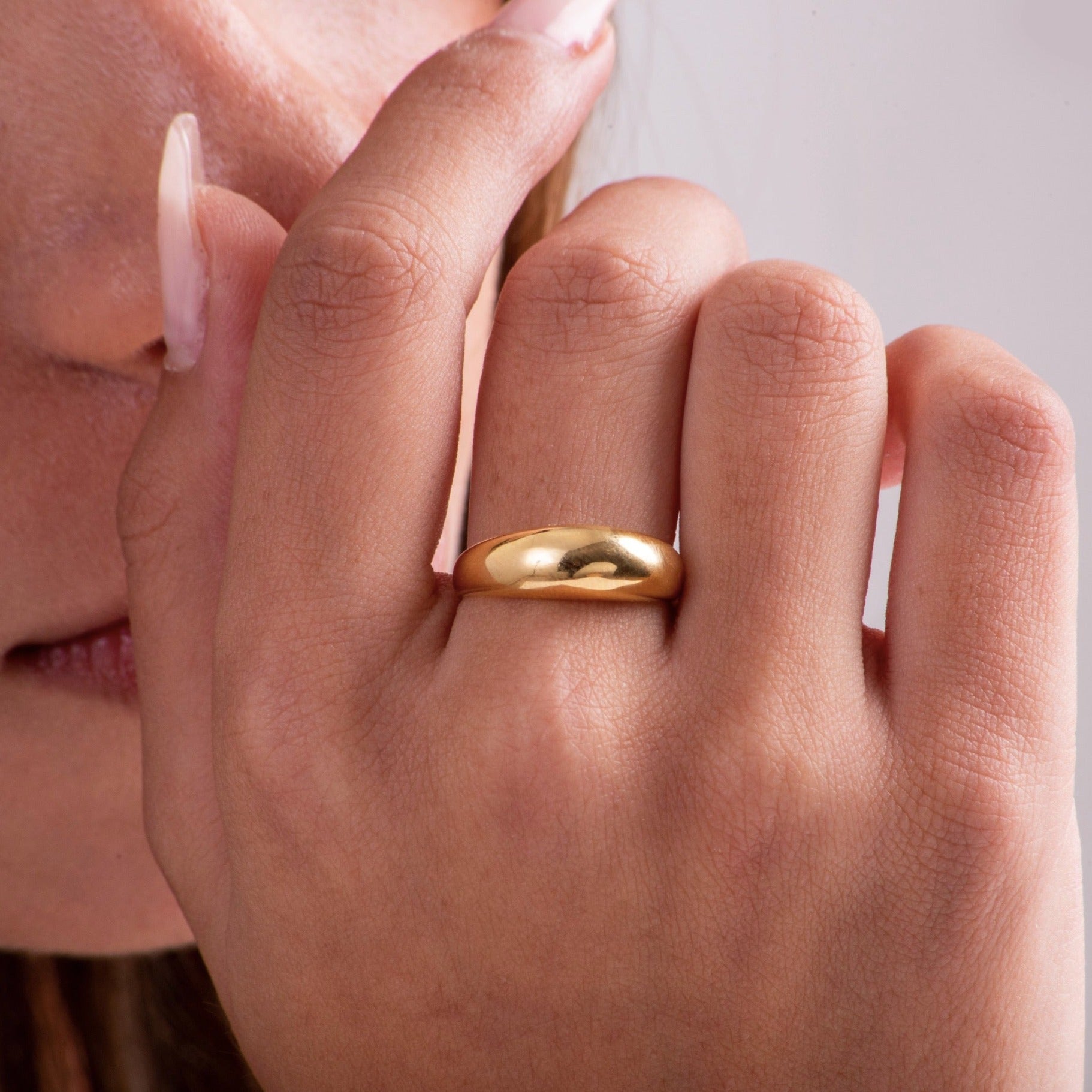 Bold, meet beautiful. This ring is sleek and extremely sophisticated. Striking enough to stand out on its own, this chunky design also amps up any stack. Finished in high shine all the way around, The Dome Ring reflects the light in an extraordinary way.