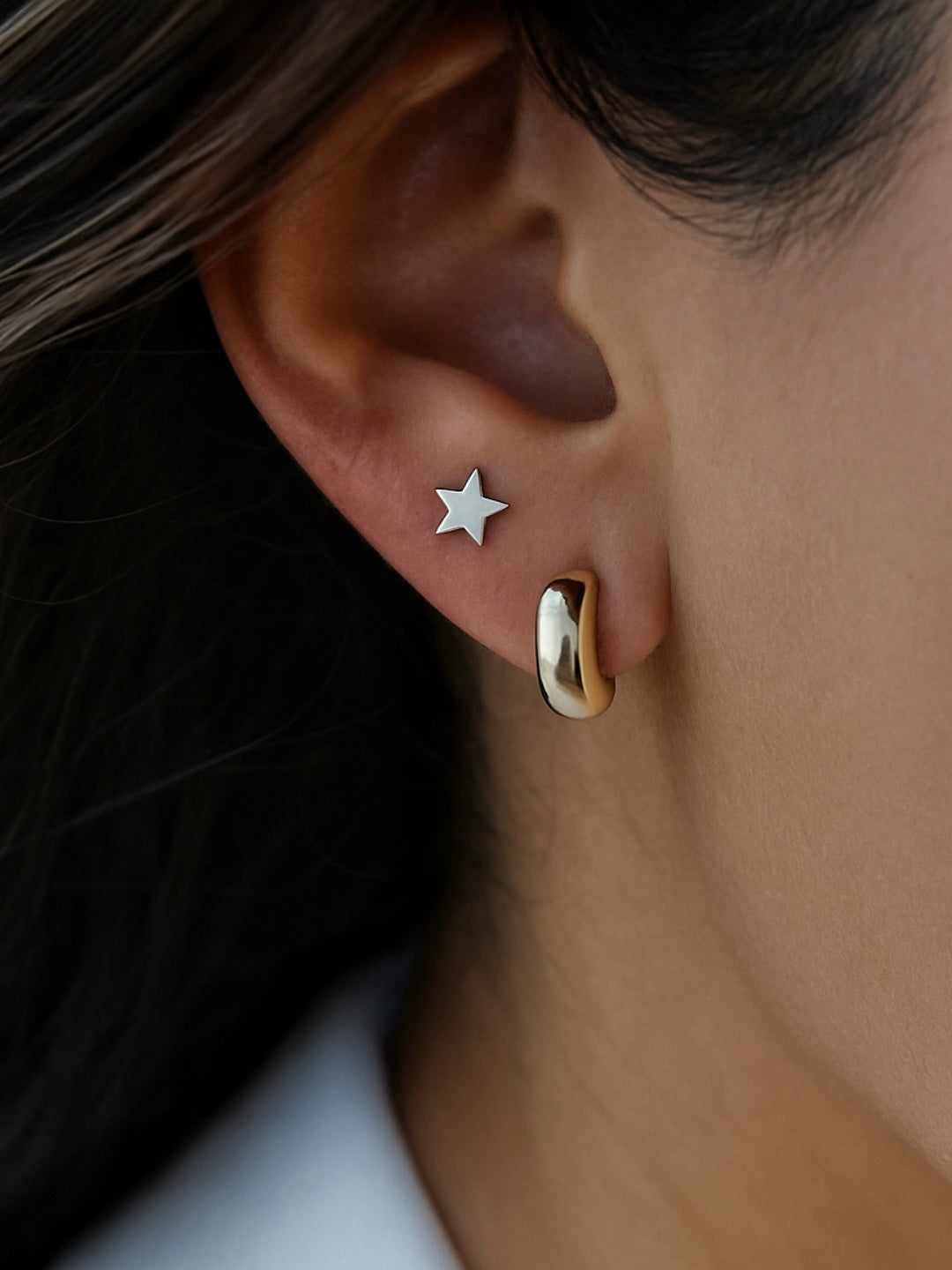 Our flat-back studs are 18k solid gold and designed for all-day comfort. They’re perfect for sensitive ears and safe for new or healed piercings. They're minimal, secure, and effortlessly stylish; a stacking essential.